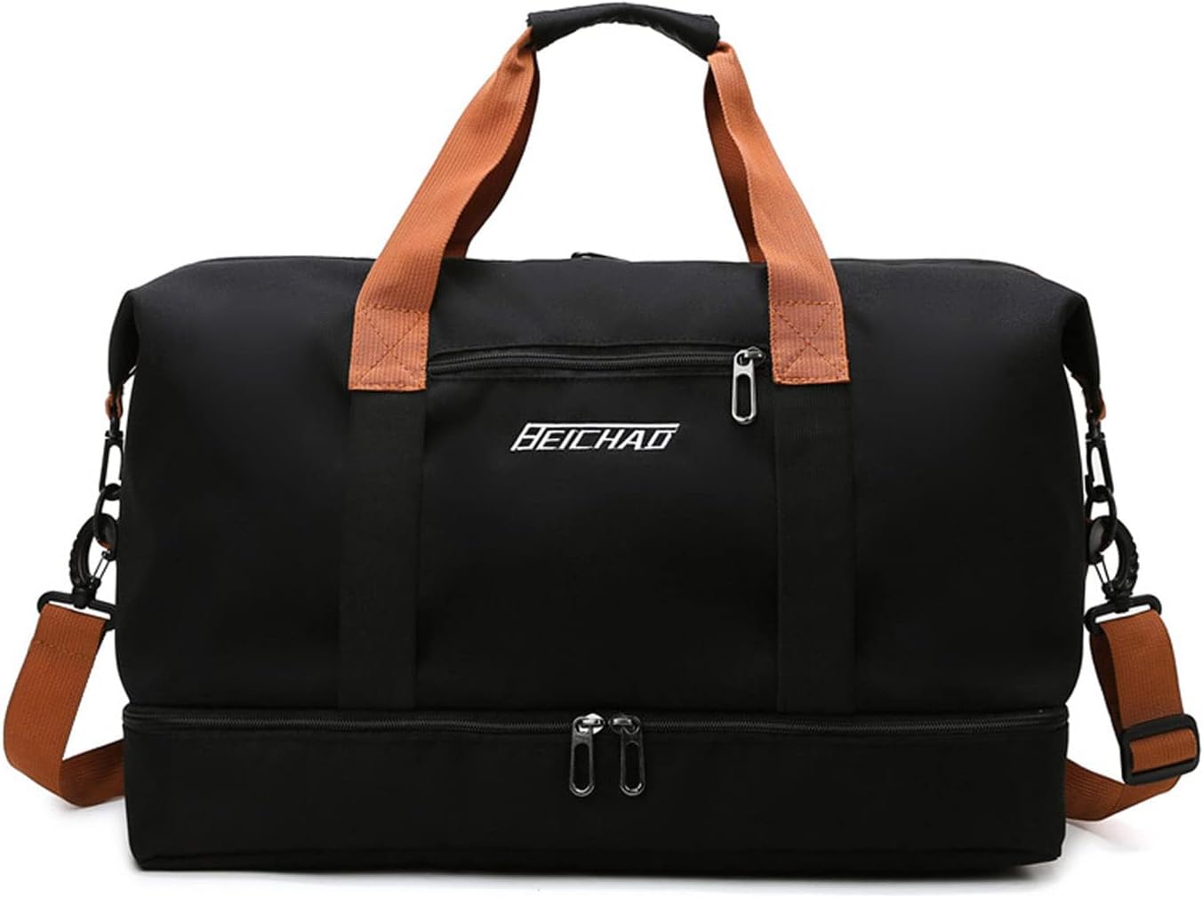 - 【Wochenendtasche für die Nacht】 Haupttasche: grosses Hauptfach + 3 * elastische Tasche + 1 * getrennte Trocken- und Nasstasche + 1 * vordere Reissverschlusstasche + unteres Schuhfach. Mehrere Taschen bieten ausreichend Platz für nasse Handtücher,