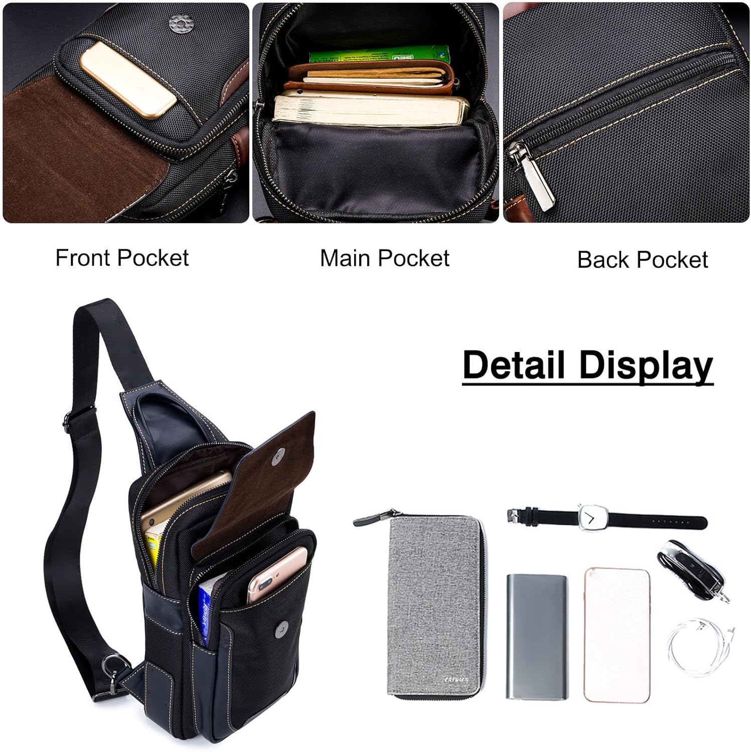 - Strapazierfähiger und ultraleichter Sling-Rucksack aus Leder - Unser Sling-Rucksack besteht aus hochdichtem, wasserabweisendem und reissfestem merzerisiertem Baumwoll- und Ledergewebe. Langlebige Reissverschlüsse schliessen und öffnen sich reibungslos