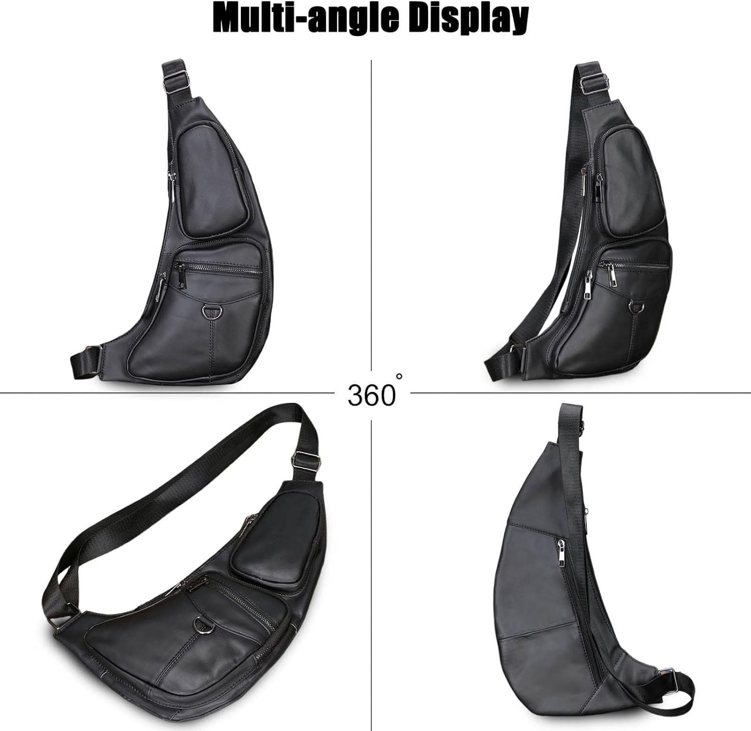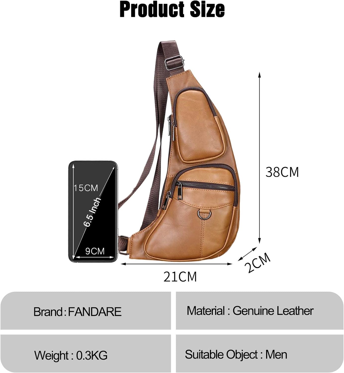 PRODUKTBESCHREIBUNGEN FANDARE Männer Klein Schwarz Leder Sling Crossbody Rucksack Dimension:21x2x38cm(Länge x Breite x Höhe); Gewicht: 0.3KG Gut organisierte Fächer - Unsere Tasche ist gut unterteilt. Die Haupttasche ist für 6,5-Zoll-Handy, Brieftasche, Powerbank, Mini-Regenschirm, Reisepass und andere kleine Accessoires konzipiert. 3* vordere Reissverschlusstasche (obere Reissverschlusstasche + vordere doppelte Reissverschlusstasche): für Telefon, Schlüssel, Karte, Münze. Perfekte Grösse für Ihre Gadgets - Unsere Leder Umhängetasche ist geräumig und so konzipiert, dass sie viele Gegenstände aufnehmen kann. Eine äussere Zubehörtasche auf der Vorderseite bietet zusätzlichen Stauraum für Gegenstände, auf die Sie schnell zugreifen müssen. Premium Quality Genuine Leather - Es ist mit Premium glänzende Qualität Erste Schicht aus Rindsleder mit wasserdichten Fähigkeit gemacht. Es ist so konzipiert, dass es über einen langen Zeitraum hinweg haltbar ist. Diese Tasche hat ein zeitgemässes Design mit klassischer Ausstrahlung für moderne Menschen, die viel unterwegs sind. Sie ist so gestaltet, dass sie Kreativität und Mode miteinander verbindet. Es wird ein hochwertiger Reissverschluss verwendet, der rostfrei, langlebig und leichtgängig ist. Bequem & vielseitig - Der kleine Rucksack ist eine gute Wahl für überfüllte Marktplätze, Flughäfen, Busse, Züge, Sportveranstaltungen und Musikfestivals. Bestes Geschenk & Universal für alle Jahreszeiten. Service Wenn Sie irgendwelche Fragen haben, werden wir Ihr Problem sofort lösen. FANDARE verpflichtet sich zu einem umfassenden Service für jeden Kunden, um die grösste Kundenzufriedenheit zu erreichen. Unser Ziel ist es, stets die beste, praktischste und vielseitigste Tasche für alle zu entwickeln und anzubieten.