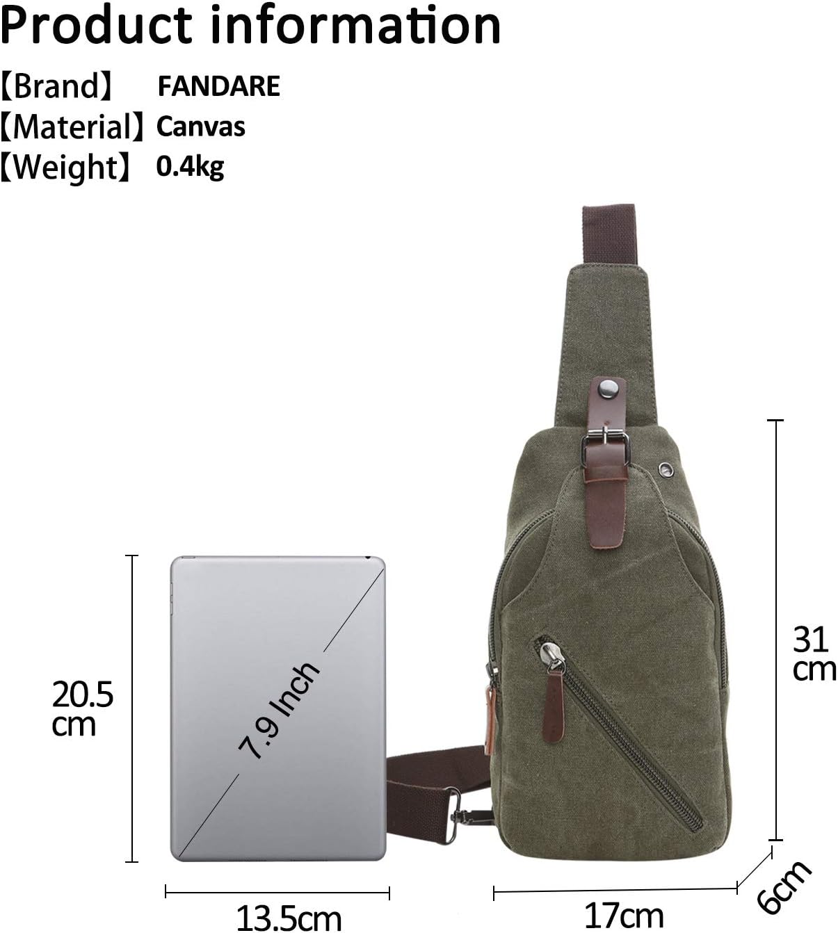 PRODUKTBESCHREIBUNGEN --- Material: Leinwand. --- Gewicht: 0.4 kg. --- Grösse: Länge: 17 cm, Breite: 6 cm, Höhe: 31 cm. Es kann 7.9 Zoll iPad halten. --- Gilt für: Studentenpartys, Büroangestellte, Liebesreisen, Liebessport. --- Tasche mit Kopfhörer Loch, Musik hören jederzeit und überall, bequeme Reise. --- PU Leder Schnalle und Hardware magnetische Schnalle öffnen und schliessen, schön und bequem. --- Mikrofaser-Reissverschluss-Band und glatten Reissverschluss, komfortabel und langlebig. --- Atmungsaktiv, abriebfest, wärmeableitend, Anti-Falten. --- Vorder-und Rückseite Reissverschlusstaschen, bequem und praktisch. --- Schultergurte können jederzeit für Ihren Komfort umgeschwenkt werden. --- Hardware-Anpassung Schnalle und Metallschnalle, tragen und praktisch. --- Interne Verteilung ist vernünftig und einfach zu speichern. --- Kann als sling bag, Umhängetasche oder Umhängetasche verwendet werden. --- Materialien mit hoher Dichte und hervorragende Nähtechniken erhöhen die Haltbarkeit und Robustheit des Rucksacks. Über FANDARE: Unsere Produkte umfassen Rucksäcke, Reisetaschen, Sporttaschen, Schultaschen, Computertaschen, Wandertaschen, Geldbörsen, Messenger Bags und so weiter. Unsere Produkte wurden in mehr als 30 Länder und Regionen wie Europa, Amerika und Asien exportiert. Bedienung: Wir versprechen, dass alle Probleme innerhalb von 24 Stunden bearbeitet und beantwortet werden. Die Garantiezeit beträgt 12 Monate.