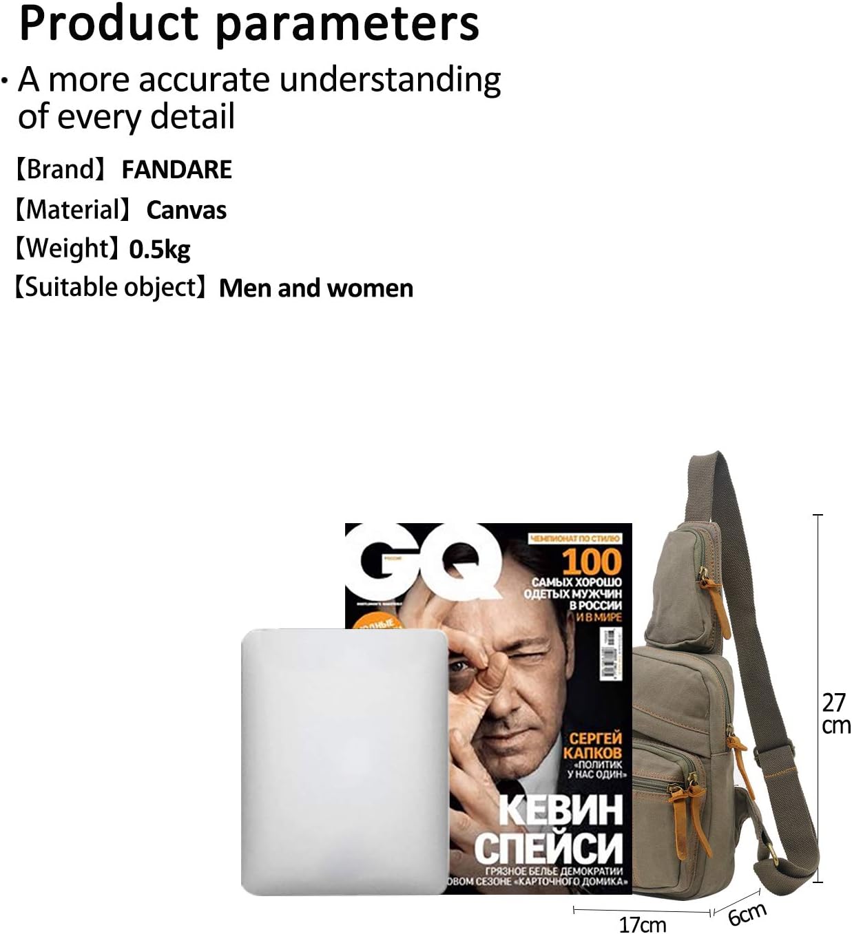 PRODUKTBESCHREIBUNGEN Produktinformationen: --- 1 x Haupttaschen mit Reissverschluss, 1 x kleine Reissverschlusstaschen. --- Hochwertiges Segeltuch, atmungsaktiv und leicht zu reinigen. --- Diese Umhängetasche verwendet hochdichte Materialien und eine hervorragende Nähtechnologie, wodurch die Tasche langlebiger wird. --- Weiches atmungsaktives Mesh für Komfort und Stabilität. Die Rückseite des Handys ist atmungsaktiv und drückt die Tasche nicht ein. Dies verhindert intensives Schwitzen am Rücken. --- Die Länge des Schultergurts ist verstellbar. Ergonomisches Design mit S-förmigen Schultergurten, die sich perfekt an Ihren Rücken anpassen, um den ultimativen Komfort zu spüren. Über die FANDARE: Unsere Produkte umfassen Rucksack, Reisetasche, Sporttasche, Schultasche, Laptoptasche, Bergsteigen, Handtasche, Umhängetasche, Aktentasche, Messengertasche, Umhängetasche, Geldbörse, Gürtel usw. Unsere Produkte wurden in mehr als 30 Länder und Regionen exportiert, wie Europa, Amerika, Asien usw.