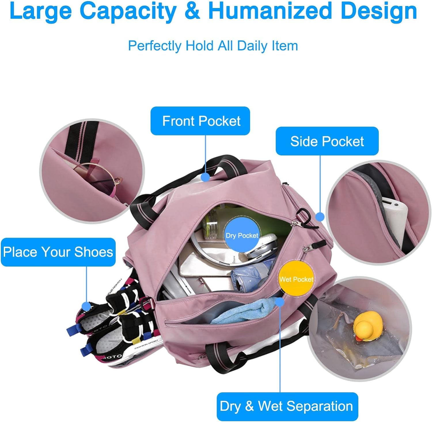 - 【Wochenendtasche für die Nacht】 Dreilagig: Haupttasche + Nass- und Trockentrenntasche + unabhängiges Schuhfach. Mehrere Taschen bieten ausreichend Platz für nasse Handtücher, Toilettenartikel, Schuhe, Kleidung und andere Reiseutensilien. Die