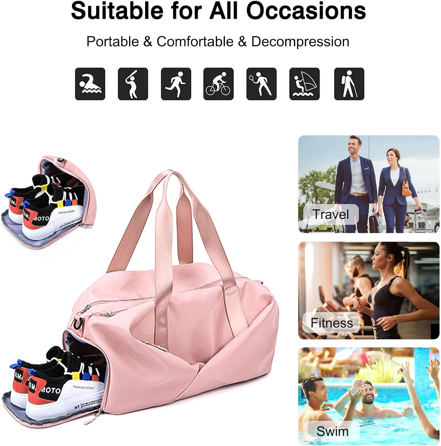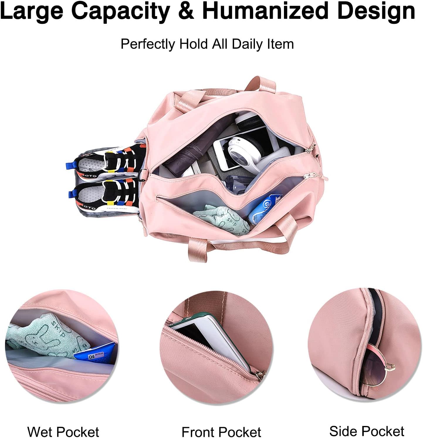 - 【Wochenendbeutel über Nacht】 Drei Schicht: Haupttasche + Wet- und Trockenabteilungstasche + unabhängiger Schuhfach. Mehrere Taschen haben genügend Platz, um nasse Handtücher, Toilettenartikel, Schuhe, Kleidung und andere Reisebedürfnisse zu