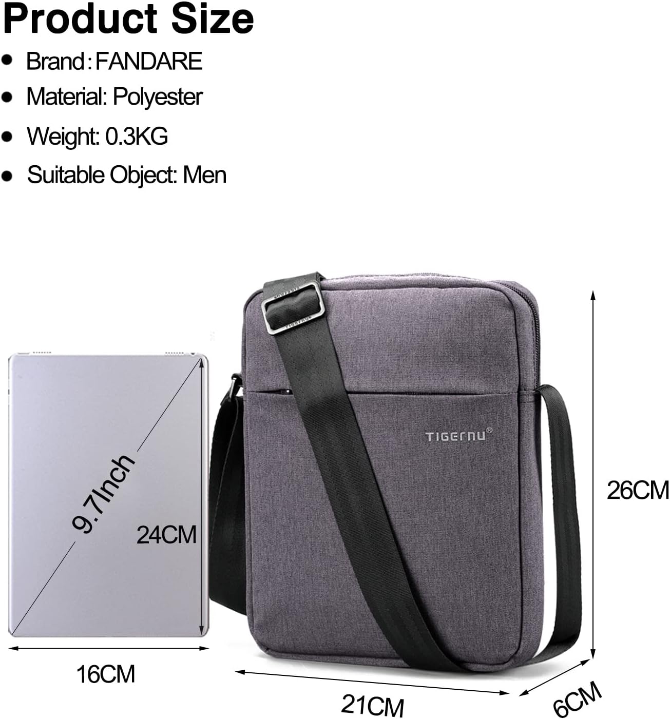 - Gut gemacht und viele Taschen - Grösse: 21x6x26cm. Hauptfach mit einer Tablettentasche (Anti-Vibration-Dekompressionspartikel-Design)+ andere Kapazität; 1* Front Reissverschlusspockt+ 1* Anti-Diebstahl hintere Reissverschlusspockt; Männerhandtaschen