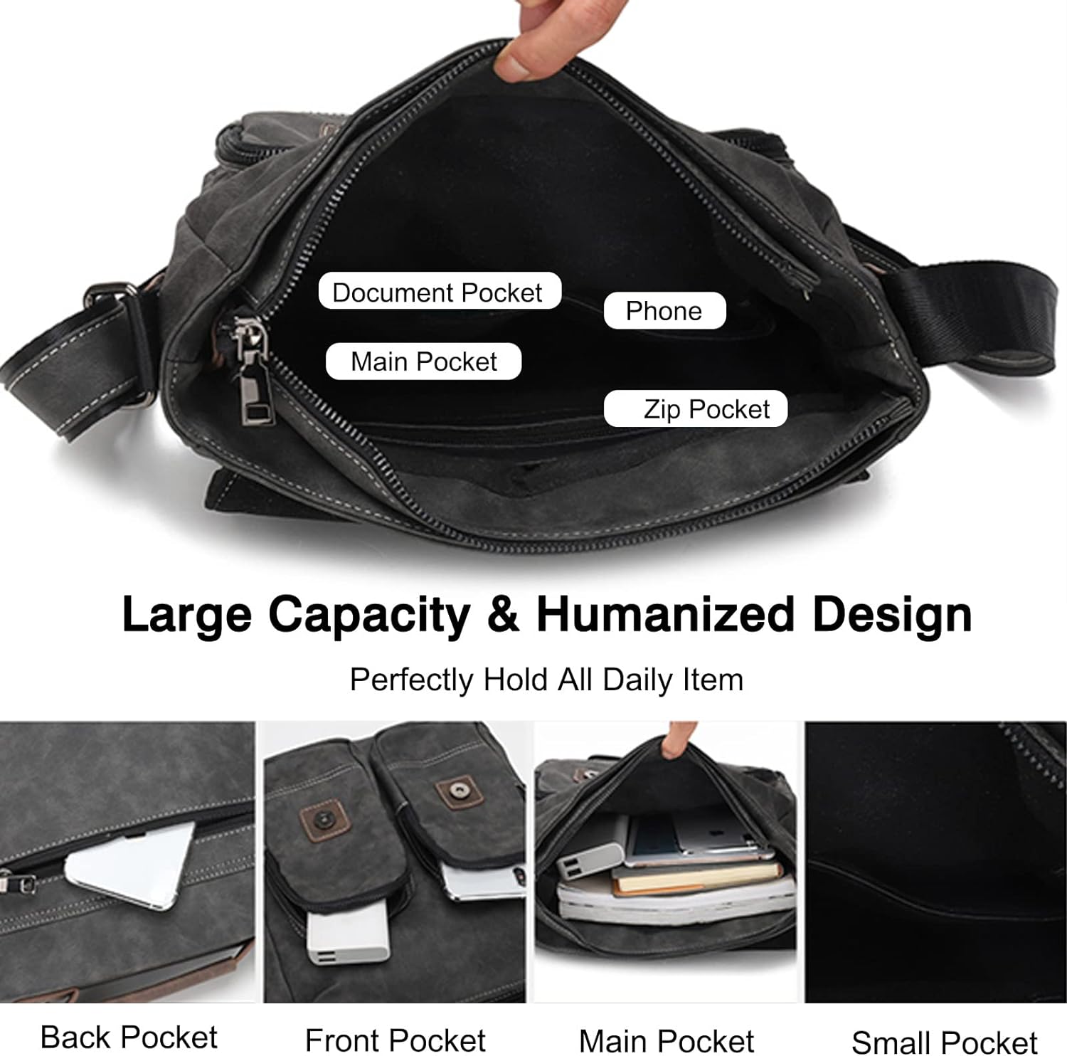 PRODUKTBESCHREIBUNGEN Elegante Umhängetasche 🎁Super leicht, elegant und lässig, geeignet für Jungen, Studenten, Jugendliche, Reisen, Arbeit. Die grosse Umhängetasche kann unabhängig von der Jahreszeit verwendet werden, lässiges und einfaches Design, geniessen Sie Ihre Reise leicht. Eine beste Wahl für Reisen, Outdoor, Wandern, Einkaufen, Schule, Bergsteigen, Fitness, Urlaub, Camping, Party usw. Praktisch und tolles Geschenk für sich selbst, Freunde, Familie bei verschiedenen Festivals. Gute Grösse und viele Taschen Masse: 28 x 8 x 30 cm (Länge x Breite x Höhe). Gewicht: 1 kg. Grosses Hauptfach: Für Mini-Tablets, Bücher, Regenschirm, Wasserflasche, Buch, Uhr, Make-up und andere tägliche Gegenstände. 2 x Fronttasche mit Reissverschluss: geeignet für Ihre mobile Stromversorgung, Ihre Kopfhörer und andere kleine Alltagsgegenstände. 🎁1 * Reissverschlusstasche auf der Rückseite: Verstauen Sie Ihre Brieftasche, Ihr Telefon und andere wichtige persönliche Gegenstände. Weich, super leicht, verliebter Stil, machen Sie Ihre Kollokation schicker und folgen Sie dem Trend. Die Herrentasche besteht aus hochwertigem PU-Leder, weich und bequem, wasserdicht, leicht, tragbar. 💕Die Laptoptasche aus Leder verwendet langlebiges Material, traditionelle Handwerkskunst, langlebige Nylonfaden Naht und hervorragende Verarbeitung. 🎁 Der Metallreissverschluss bewegt sich reibungslos, ist sehr langlebig und nicht leicht zu brechen. Der klassische Stil unterstreicht das Temperament des Gentlemans. 💕Bequemer Griff und verstellbarer Schultergurt, ändern Sie frei die Tragemethoden: Pendelhandtasche, Schultasche für Herren, wasserdichte Umhängetasche, Leder Umhängetasche.