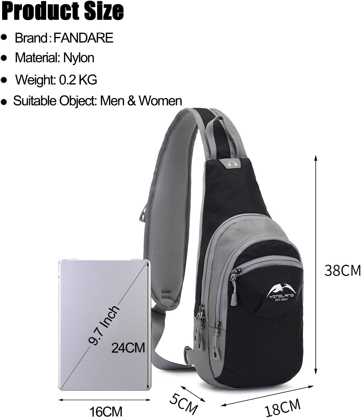 - ✔Mehrzweck-Umhängetaschen - Unser Brustrucksack besteht aus wasserabweisendem Nylongewebe, ist sehr langlebig und leicht. Der Schultergurt und der Rücken sind aus atmungsaktivem Material, damit Sie sich beim Reisen, Wandern und so weiter wohl