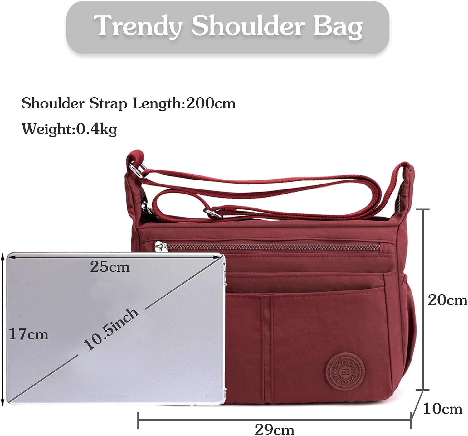 - ⭐【ABMESSUNGEN】: 29 x 10 x 20 CM (Länge x Breite x Höhe). Das Nettogewicht beträgt ca. 0,4 kg. Es ist eine mittelgrosse Handtasche mit viel Platz zum Verstauen Ihrer wichtigsten Dinge. 10,5-Zoll-Tablets, Mobiltelefone und Regenschirme können