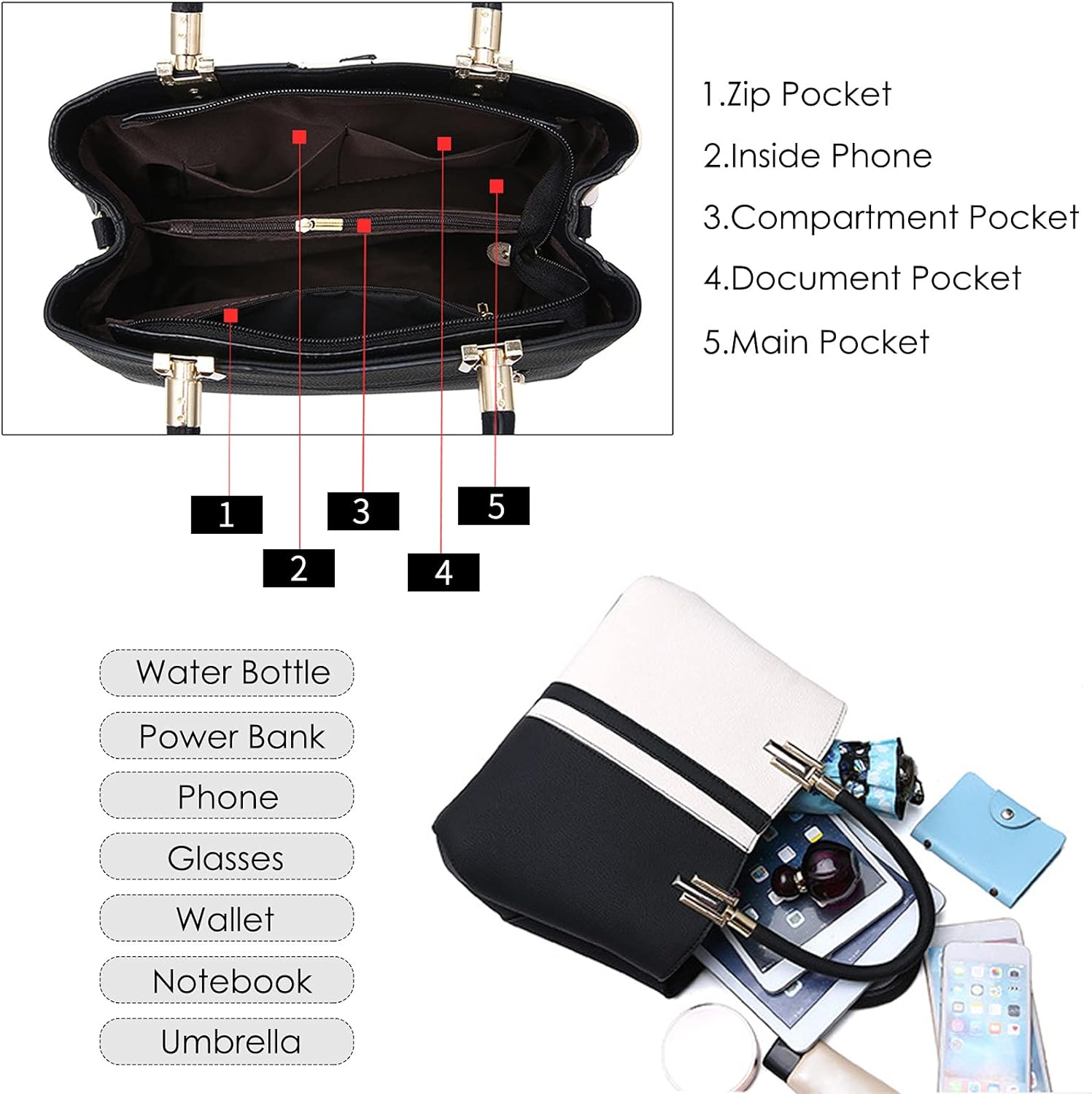 - 💗Gut organisierte Struktur: insgesamt 6 Taschen. Das Design mit 2 Hauptfächern hält alle Ihre Sachen ordentlich und ordentlich. Zusätzliche 2 Steckfächer und 1 Reissverschlussfach innen erleichtern den Zugriff für Ihre Gadgets oder Schlüssel.