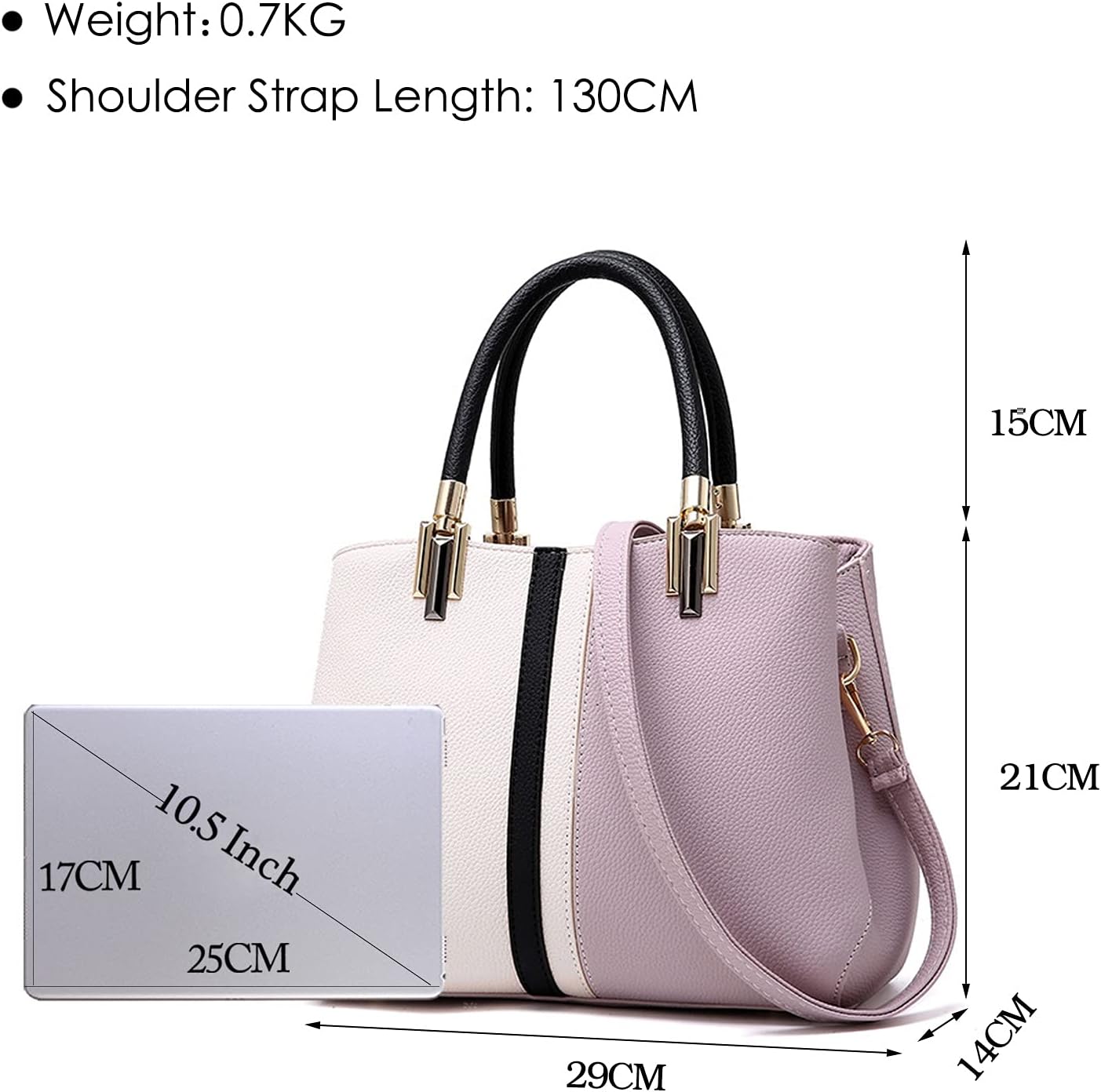 - 💗Praktische Grösse: 29x14x21cm (Länge x Breite x Höhe). Das Nettogewicht beträgt ca. 0,7 kg. Der verstellbare Schultergurt ist ca. 130 cm lang. Es kann bequem und sicher 10,5-Zoll-Tablets, Mobiltelefone, Regenschirme, Geldbörsen, Sonnenbrillen
