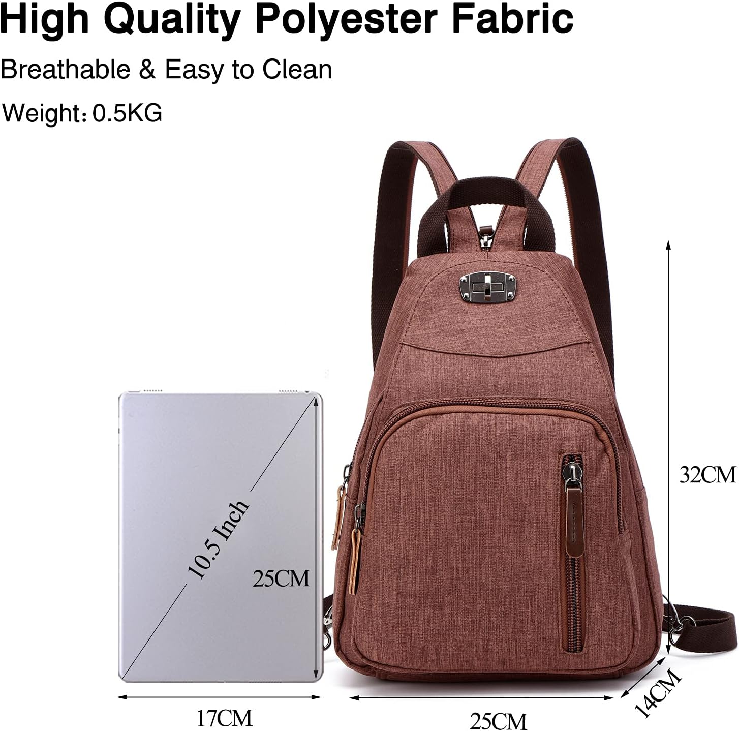 - Grosse Kapazität - Abmessungen: 25x14x32cm (Länge x Breite x Höhe). Haupttasche mit 1 Reissverschlusstasche + 2 offenen Taschen + Tasche mit anderem Fassungsvermögen. Aussen enthalten 2 vordere Reissverschlusstaschen + 1 hintere