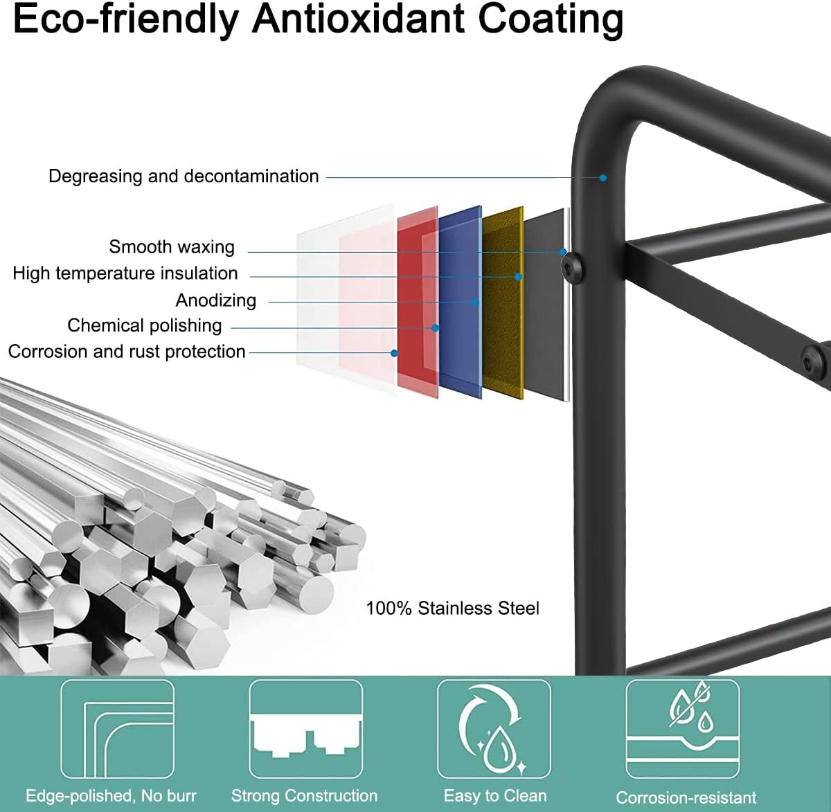 - Edelstahl und mattes Finish – 100 % hochwertiger Edelstahl mit umweltfreundlicher Antioxidantien-Beschichtung, Gesundheits- und Umweltschutz, rostfrei und abriebfest. FANHAO Schuhregal ist stark und stabil genug, um mit den schwersten Schuhen gefüllt