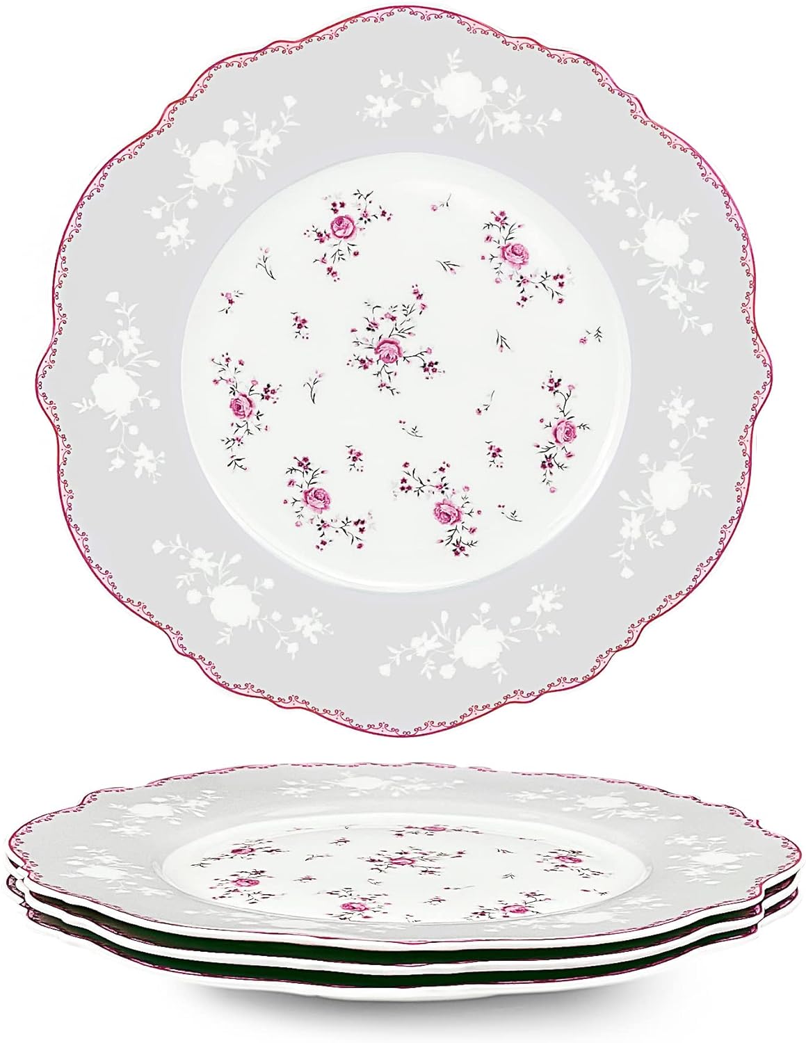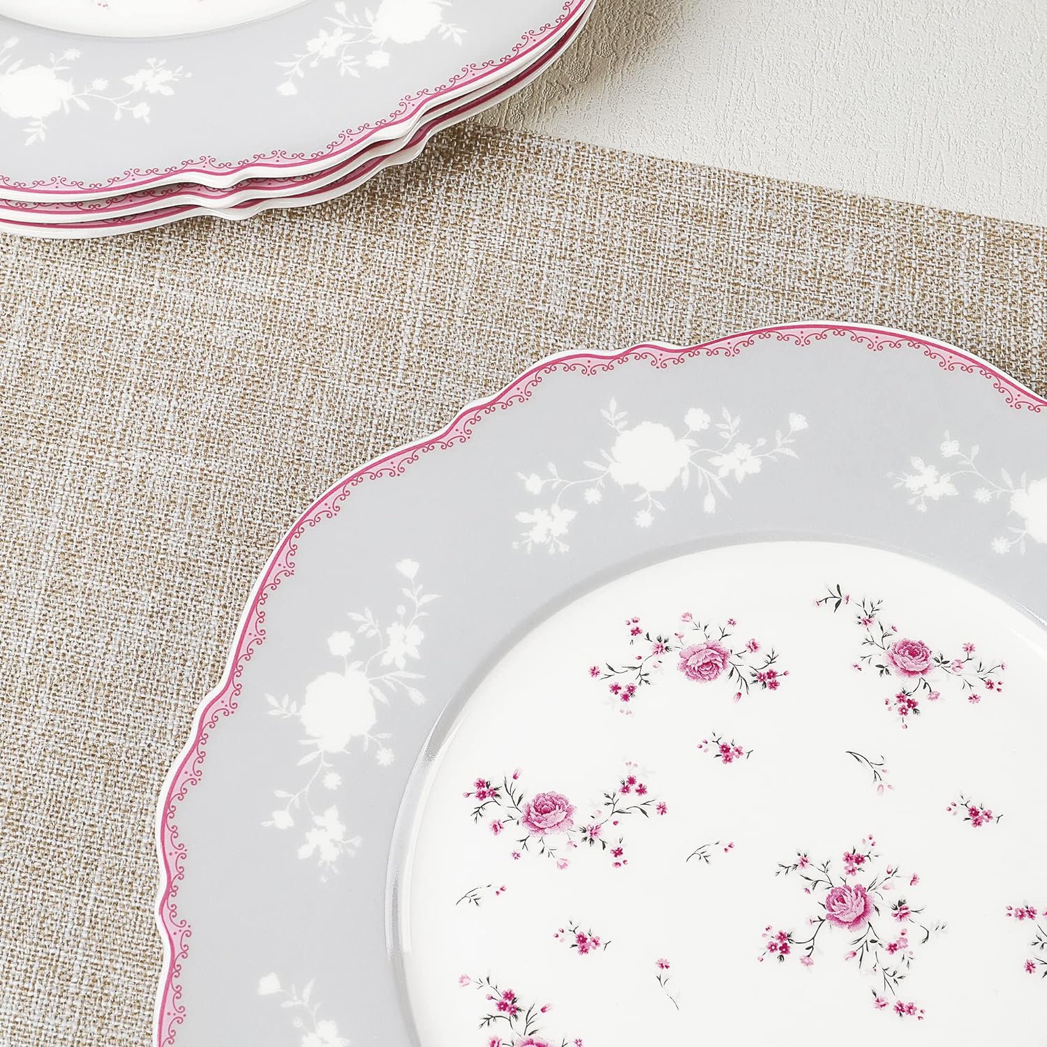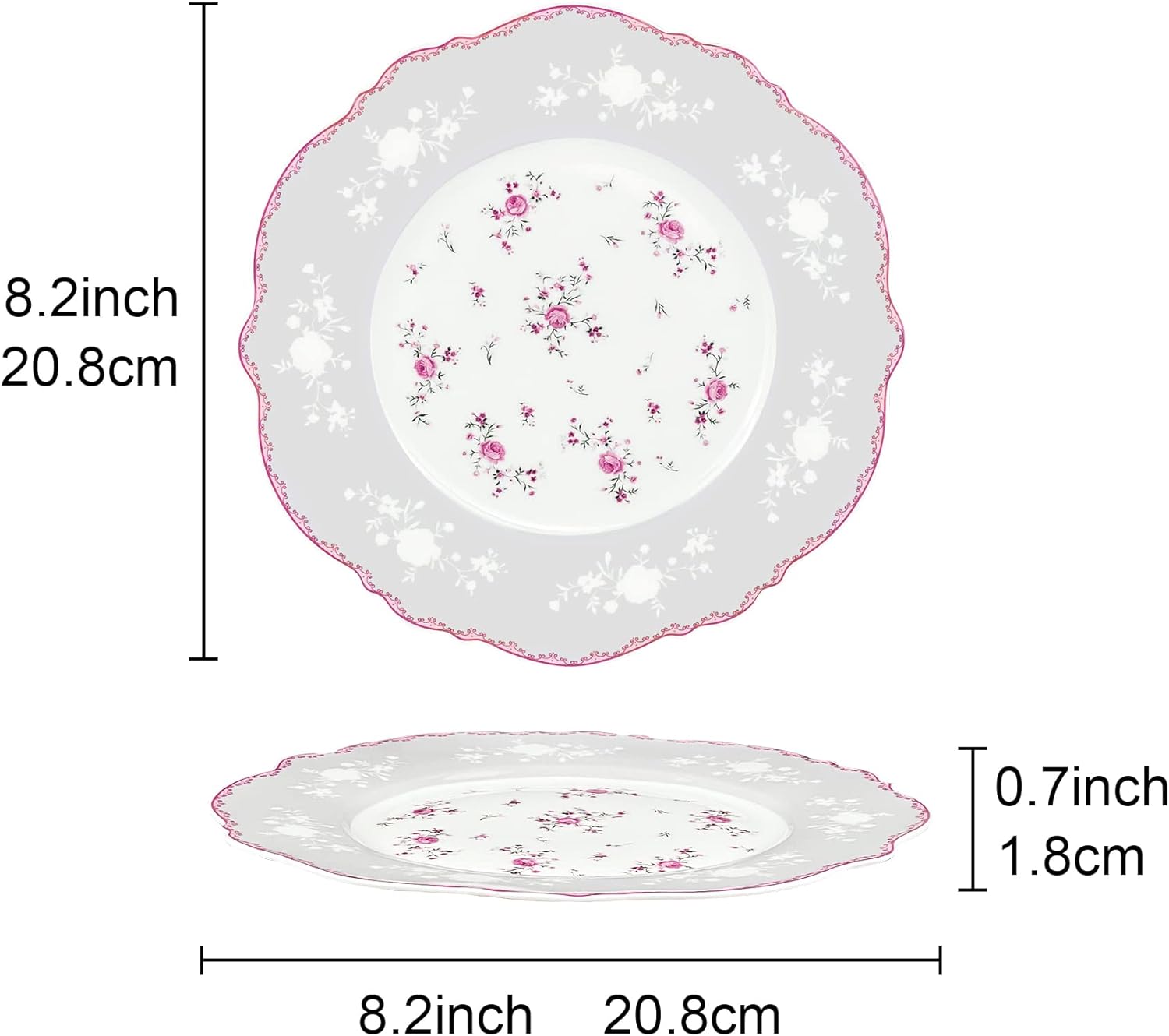 - DESIGN: Das dessertteller set ist mit einem rosa rand versehen, und der Teller ist von rosa blumen umgeben. Nach dem Setzen Essen auf fanquare teller, elegant und exquisit aussehen. Während Sie das Essen geniessen, bringen auch eine angenehme Zeit mit