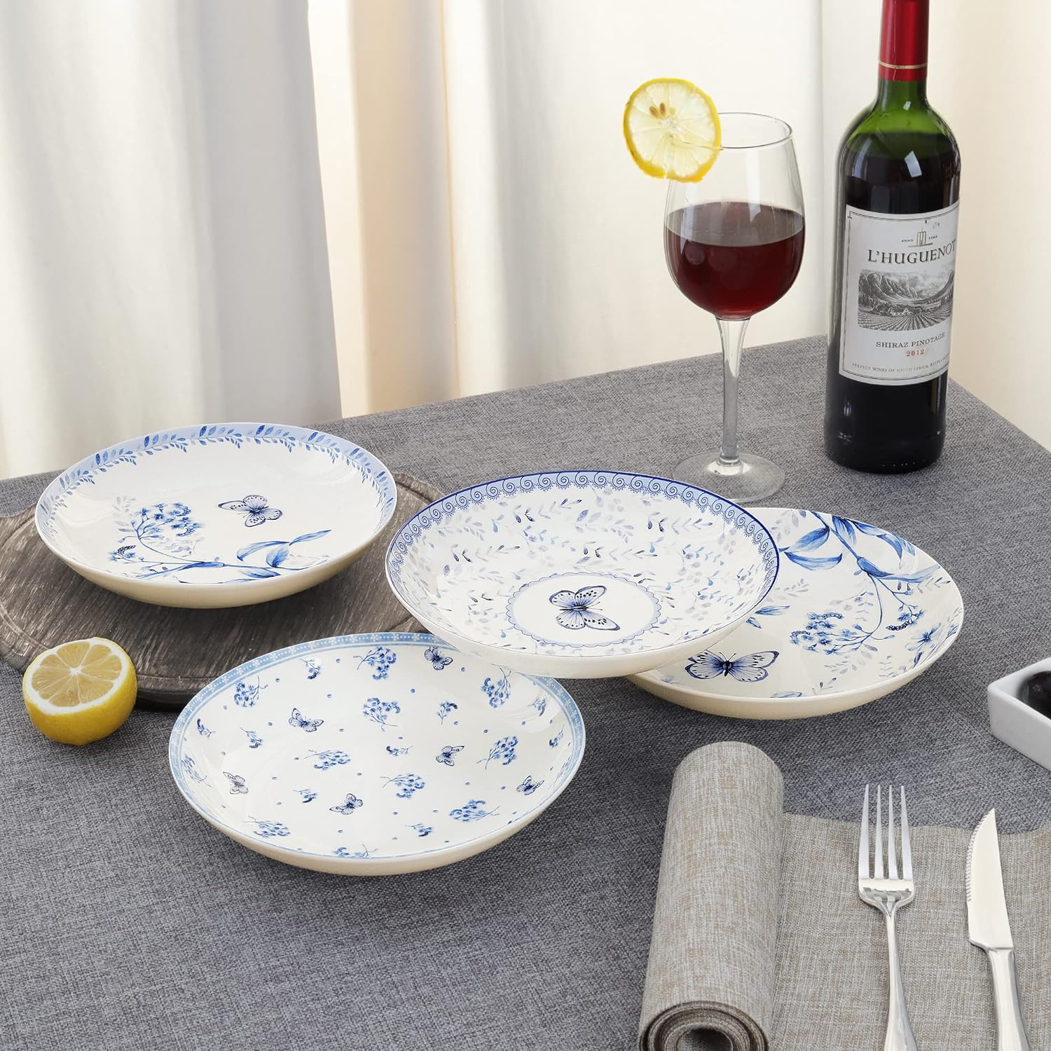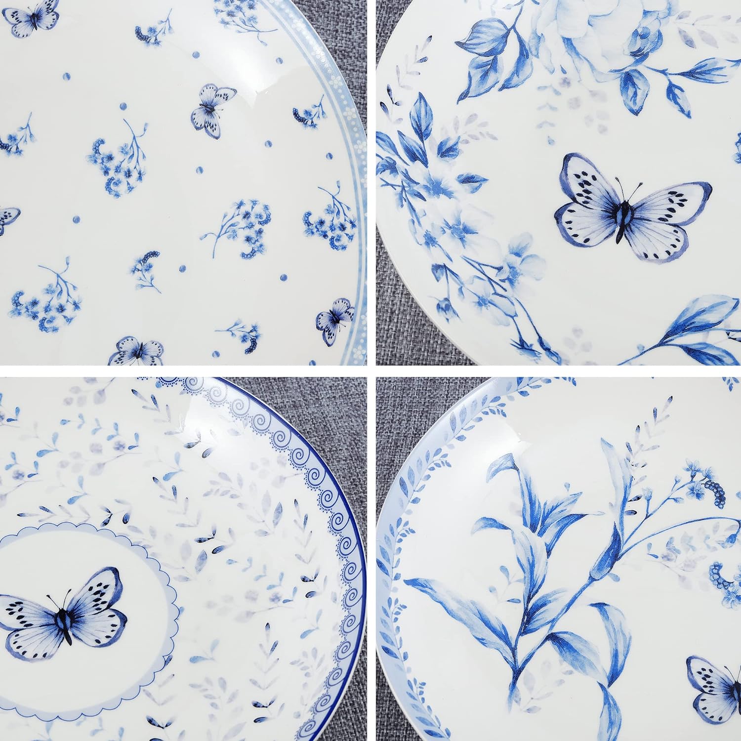 - PRAKTISCHER TELLER: Enthält 4 flache Schalen: 20,8 cm. Die blauen Blumenteller im Vintage-Stil eignen sich zum Servieren von Salat, Pasta, Vorspeise, Brot und Butter, Pommes Frites, Steak für das tägliche Abendessen oder für Feste