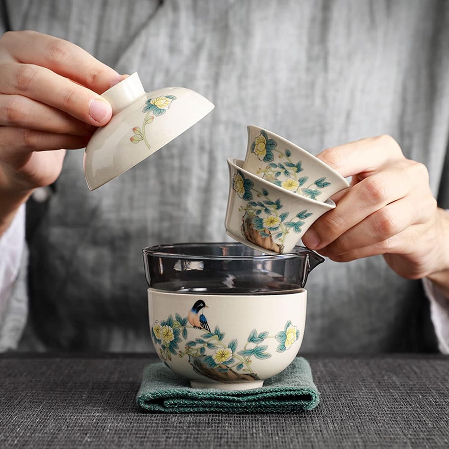 - PAKET: Kommt mit Kartonpaket, einschliesslich 1 GaiWan, 1 Gross Tassen,2 Tassen und 1 Reisetasche. Das Porzellan Tee set ist mit Schaumstoff und einer stossfesten Box verpackt, um Versandschäden zu vermeiden.