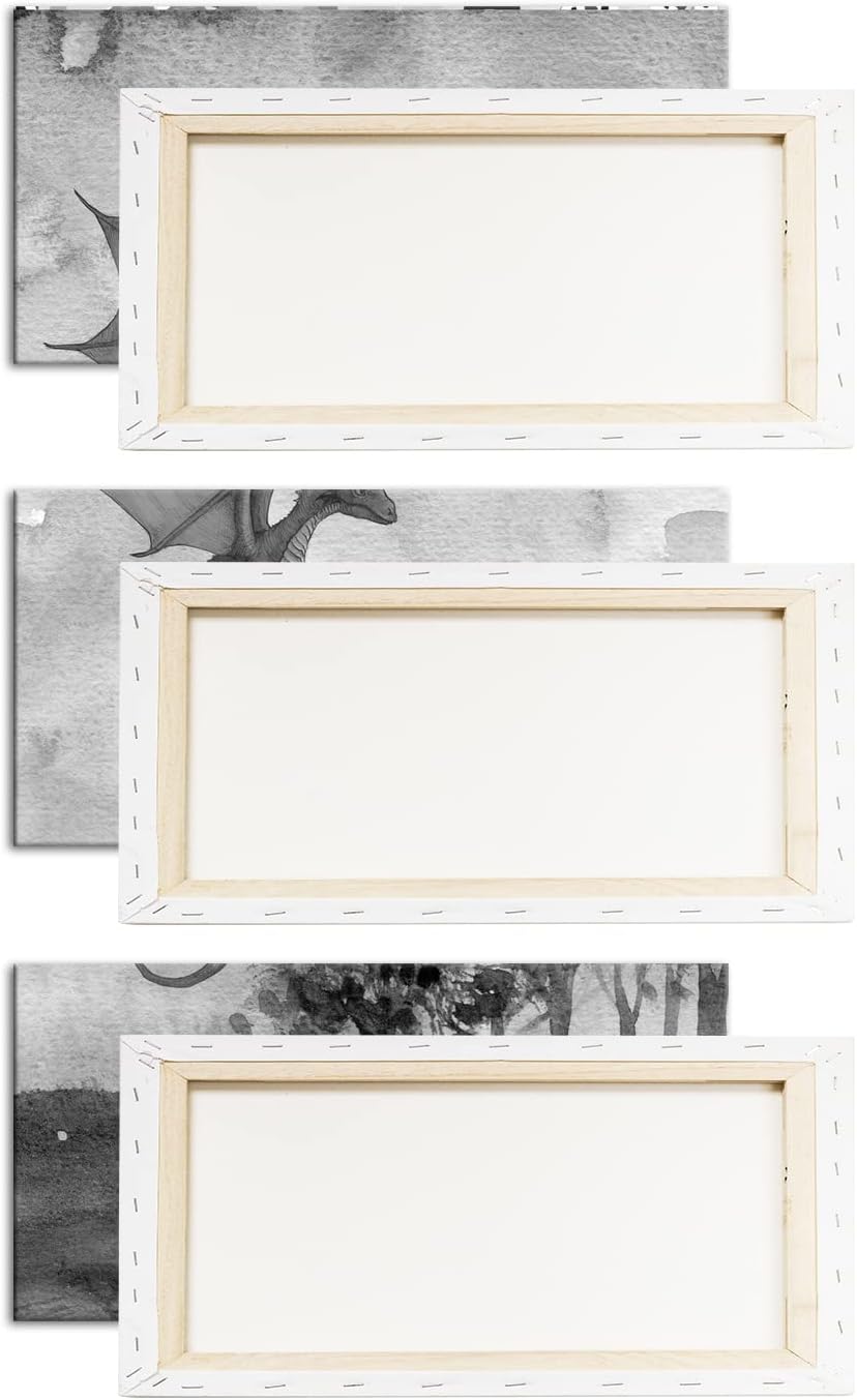 deyoli Fantasiegemälde eines lila Drachen Format: 3Teilig als Leinwand, Effekt: Schwarz&Weiss, Motiv