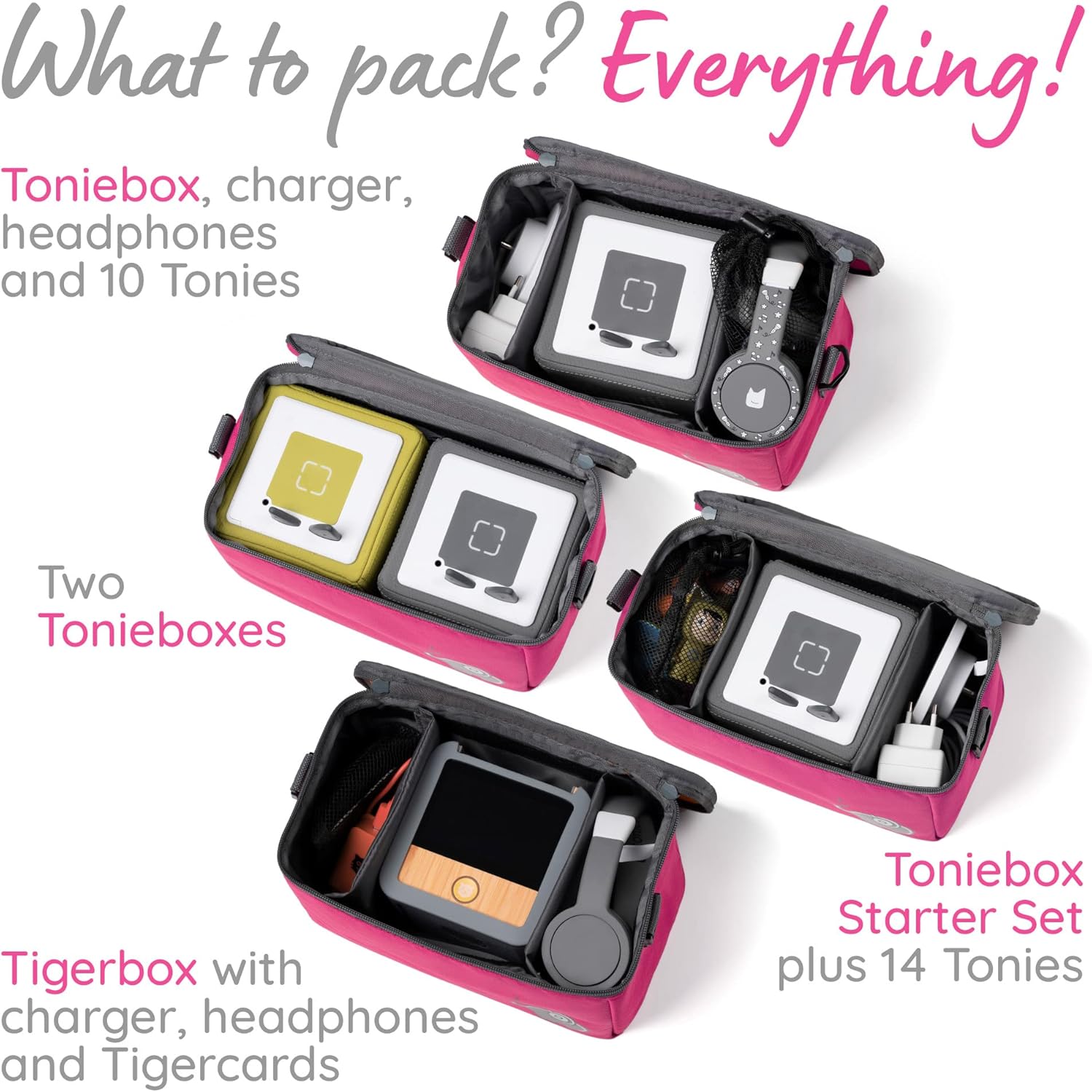 - 😎 𝗙𝗟𝗘𝗫𝗜𝗕𝗘𝗟 𝗪𝗜𝗘 𝗜𝗛𝗥 - Verstellbare Innenfächer machen die Toniebox Transporttasche verschieden nutzbar. Egal ob in die Tasche Toniebox und Lieblingstonies oder gleich das ganze Toniebox Starter Set samt