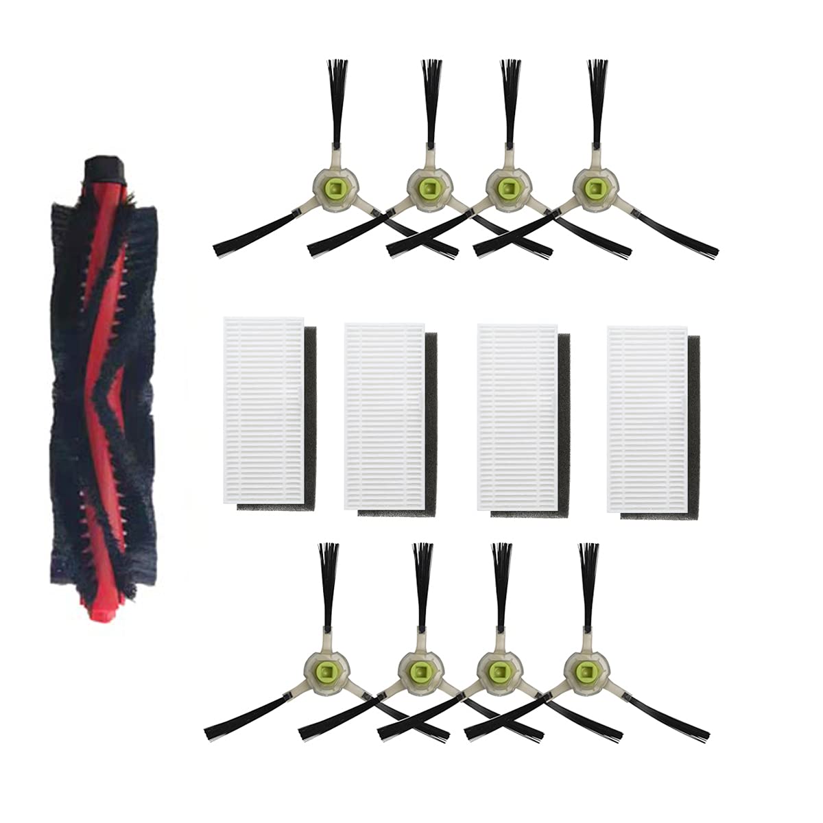 - Lieferumfang: 8 Seitenbürsten und 4 HEPA-Filter, 1 Hauptbürste.