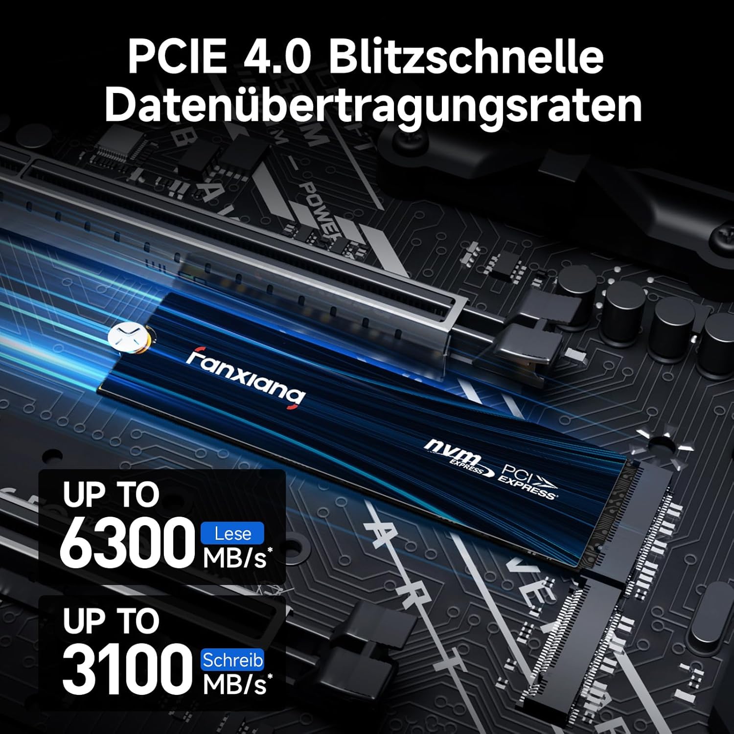 fanxiang NVMe SSD 500GB, M.2 PCIe Gen4x4 Gaming Solid State Laufwerk, 6300MB/s Lesen, 3100 MB/s Schr