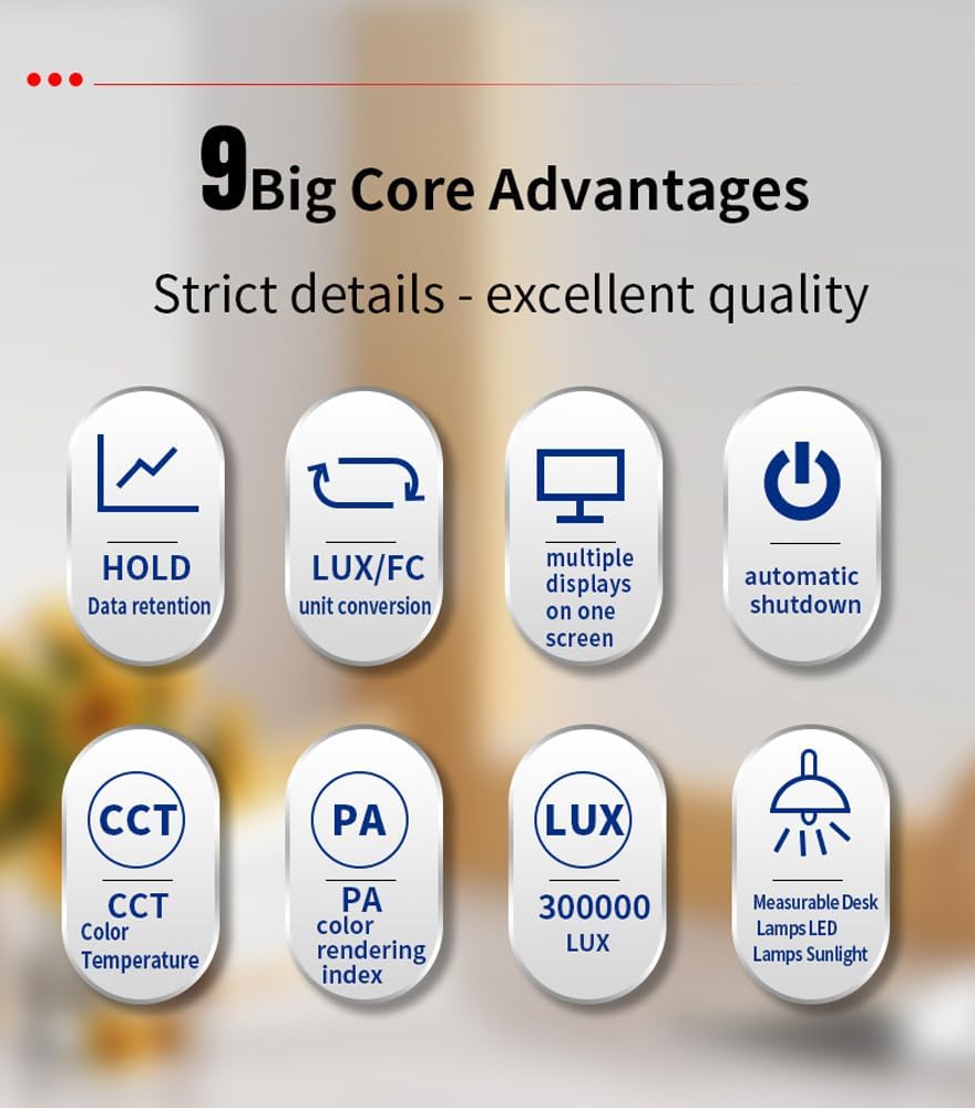- 【Vielfältige Einsatzmöglichkeiten und Szenenkompatibilität】: Diese Messgeräte decken Messbereiche von 0,5 bis 300.000 LUX ab und eignen sich zur Bewertung verschiedener Lichtquellen im Innen- und Aussenbereich, darunter Schreibtischlampen,