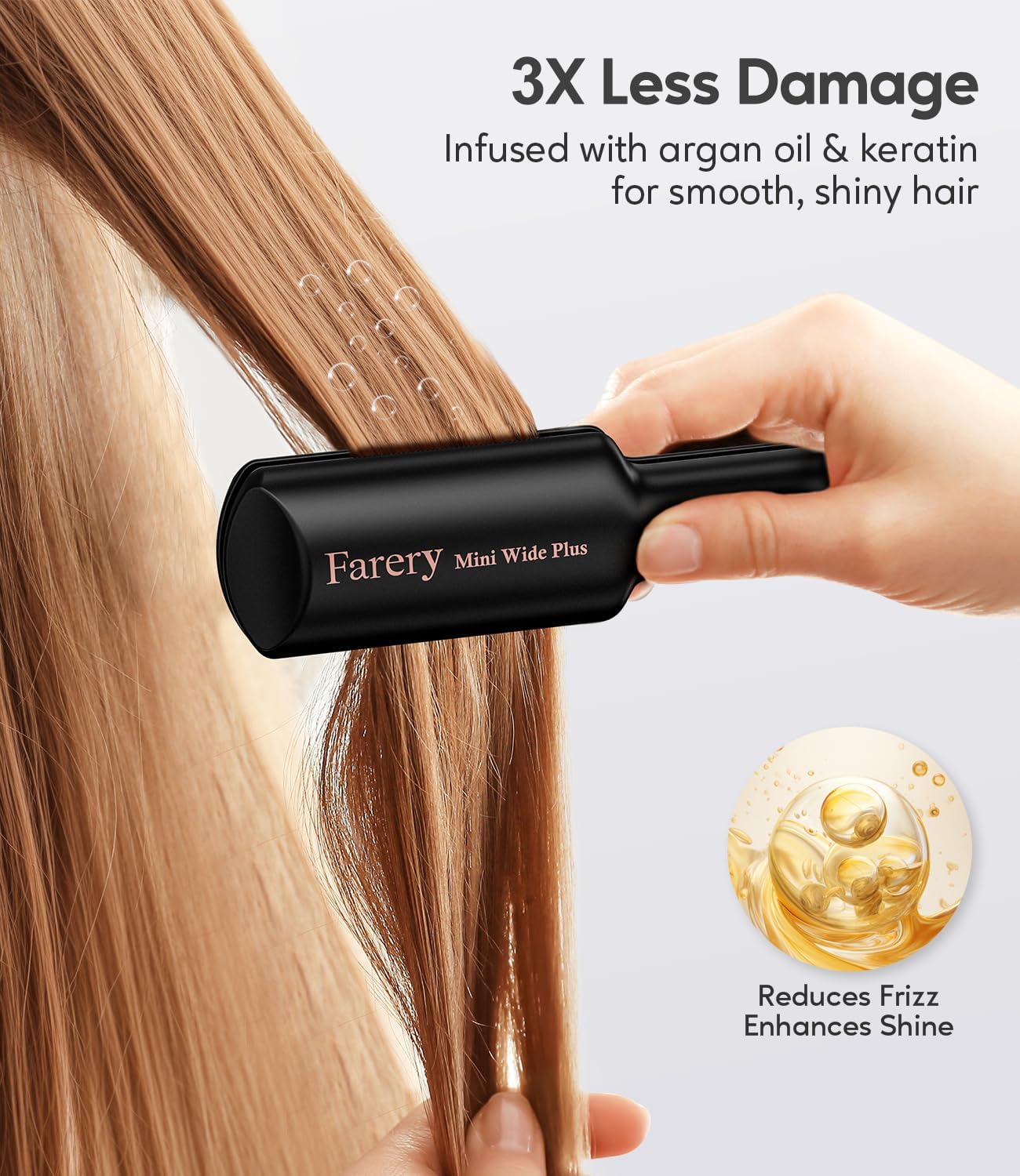 - [3x weniger Schäden beim Styling] Der kleine Haarglätter von Farery Travel pflegt Ihr Haar, indem er den Glätteisenplatten Arganöl, Keratin und Turmalin hinzufügt. Keramische Beschichtungsplatten verteilen die Wärme gleichmässig und verringern so