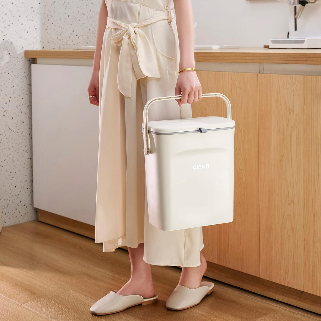 - Dut Deckeldesign - Sie müssen den Deckel nicht umdrehen und einfach den Deckel nach oben oder unten schieben. Vermeiden Sie Ärger und schmutzen Ihre Hände. Innenkompostbehälter mit Deckel, das speziell als versteckte, nicht riechende Obstfliege frei