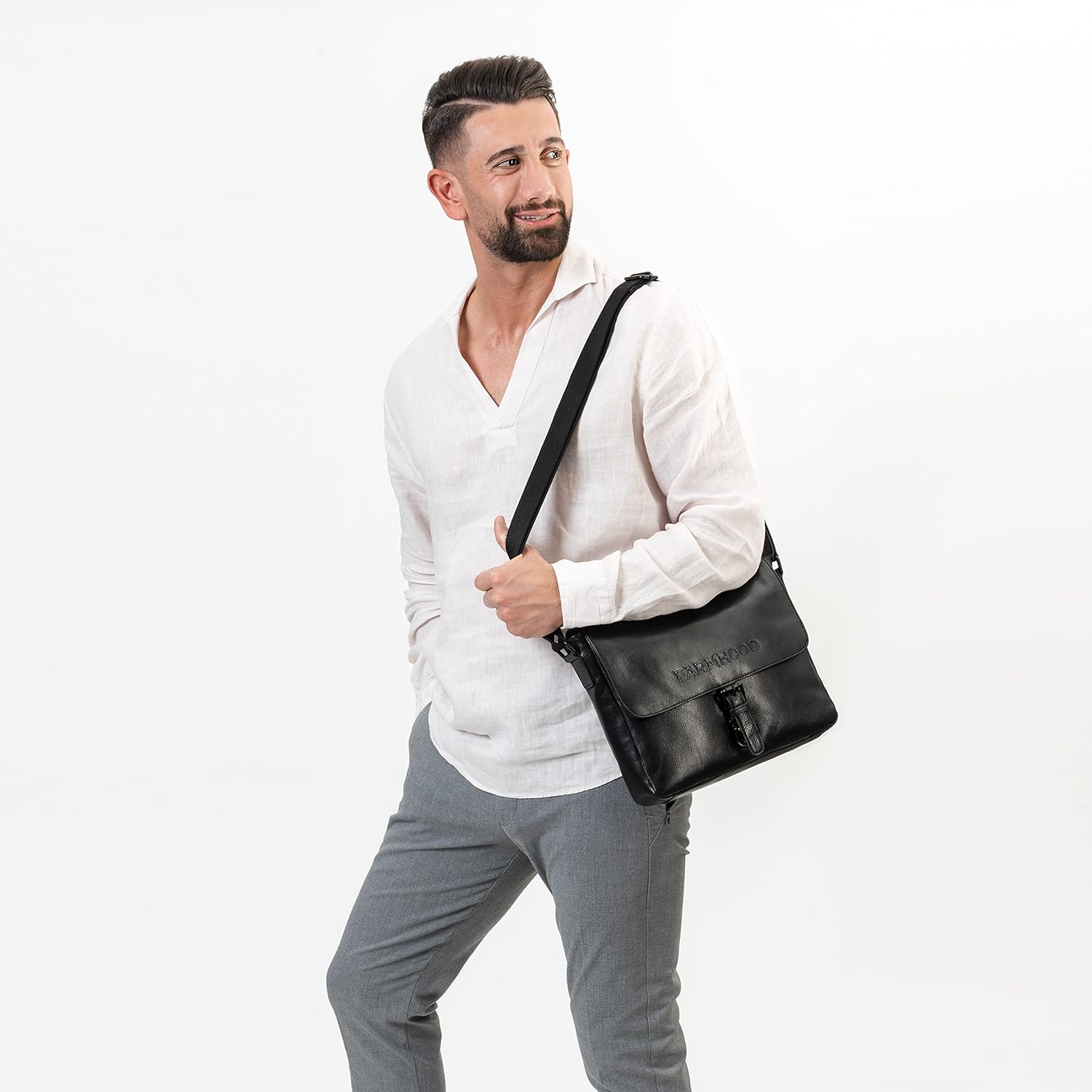 FARMHOOD Memphis Damen/Herren Aktentasche mittelgross 32 cm - Messenger Bag aus Leder mit 2 Steckfäc