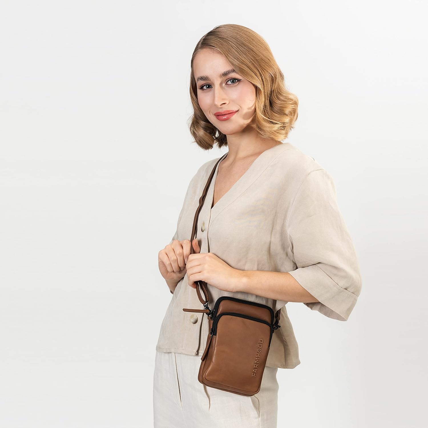 FARMHOOD Nashville Damen/Herren grosse Leder Handytasche | längenverstell- & abnehmbarer Trageriemen