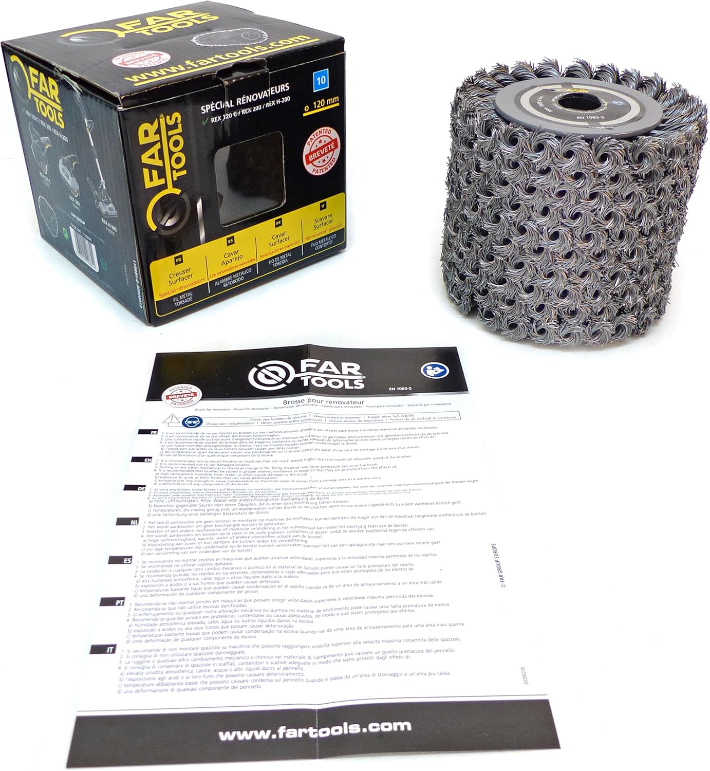 - Drahtbürste aus Metall, verdrillt – besonders starkes Abbeizen auf flachen Oberflächen Stein und Metall (Durchmesser 120 mm). Breite: 100 mm