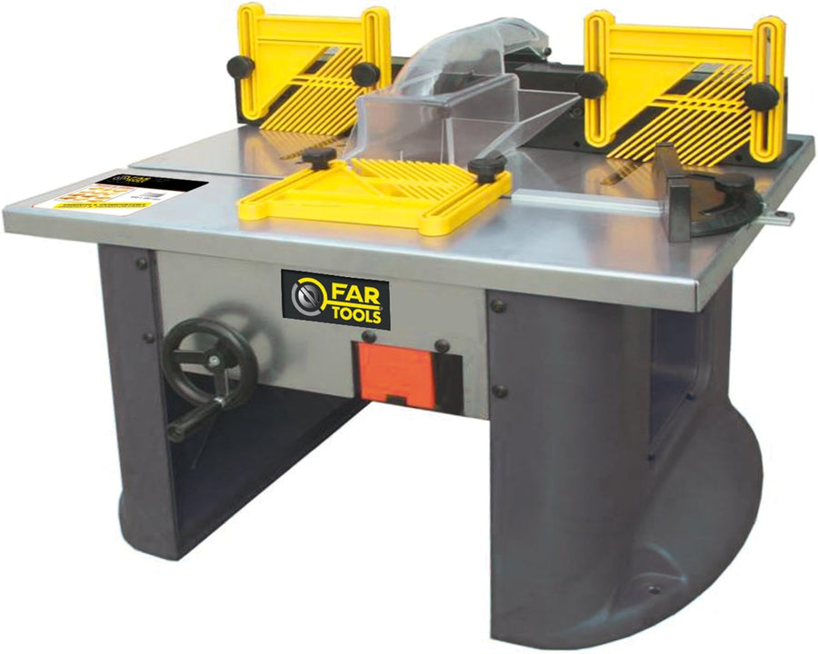 - Die grosse Arbeitsfläche aus Gusseisen und die Erweiterungen machen die Werkbank stabil. Dank der 1500 W Leistung der Fräsmaschine können auch grosse Holzteile bearbeitet werden.