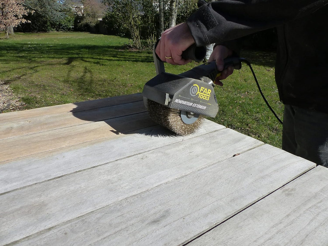 - Produkt 1: Speziell für das Holz im Aussenbereich. Diese weichen und geriffelten Bürsten ermöglichen es, schwer erreichbare Stellen zu erreichen.