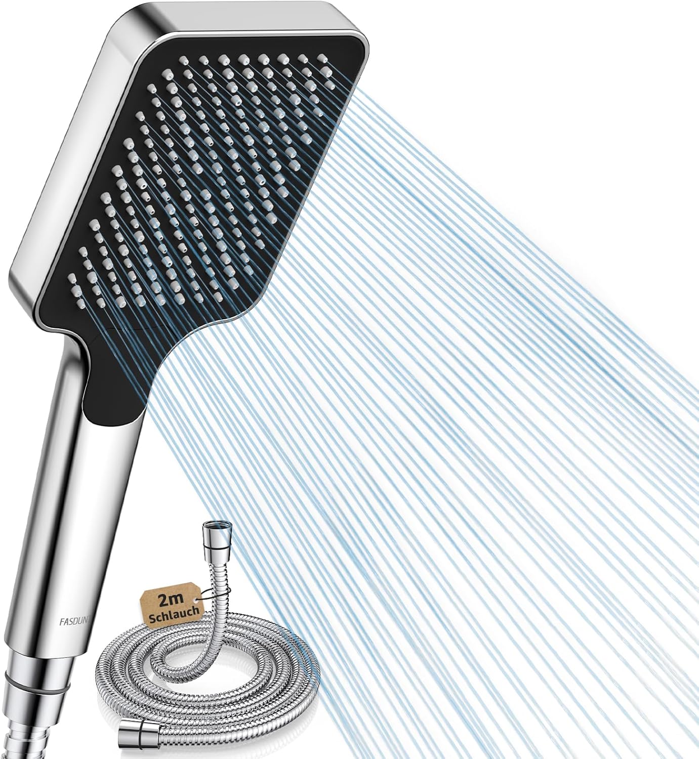 - Hochwertiger Duschschlauch: In Umfragen von 2000+ fiel nicht nur die Qualität der Dusche von FASDUNT auf, sondern der FASDUNT-Schlauch wurde auch von 92% der Kunden als: besonders flexibel, extrem robust und bruchfest. Mit einem Standard-G1/2-Anschluss