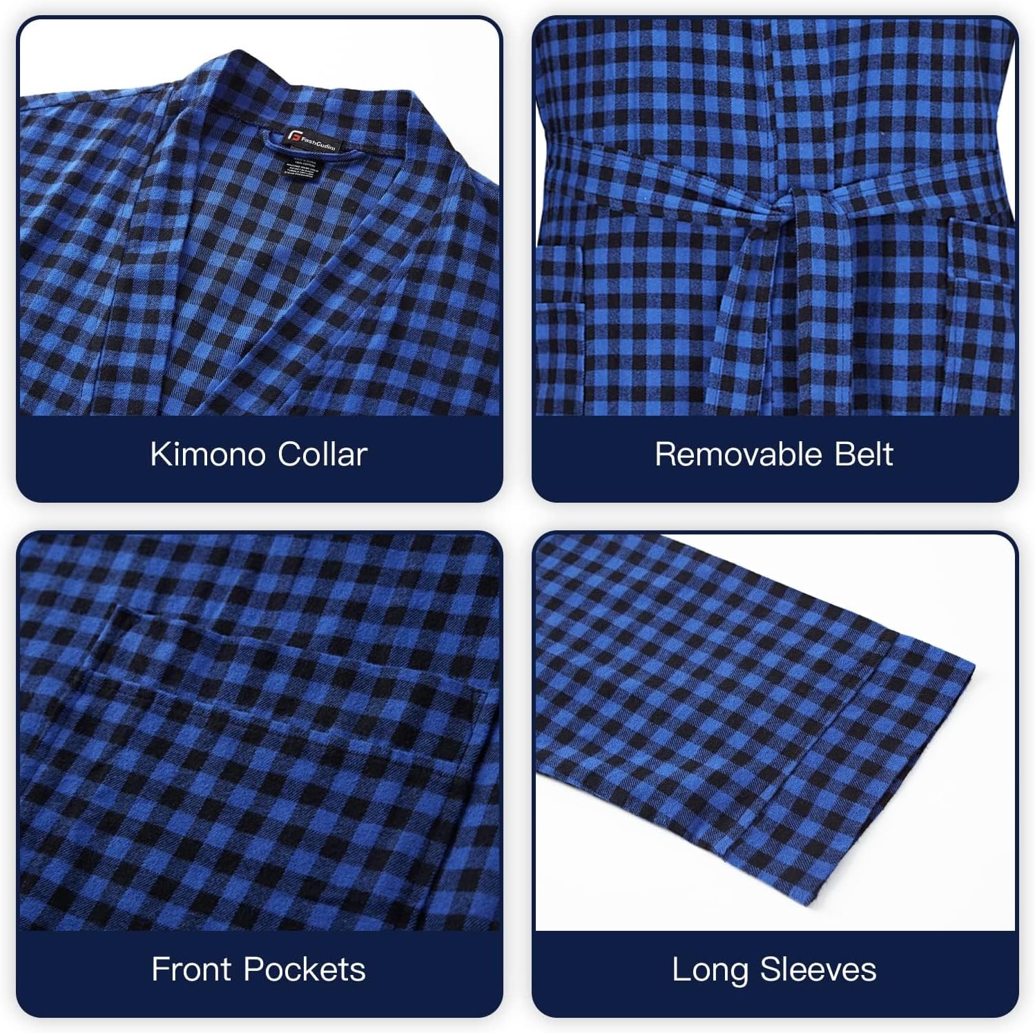 - Ganze Länge klassischer Karo-Bademantel - Der Herren-Baumwollflanell-Bademantel von FashGudim besteht aus einseitig gebürstetem Baumwollgewebe, das sich weich, atmungsaktiv und komfortabel anfühlt. Die klassischen Karomuster verleihen diesem