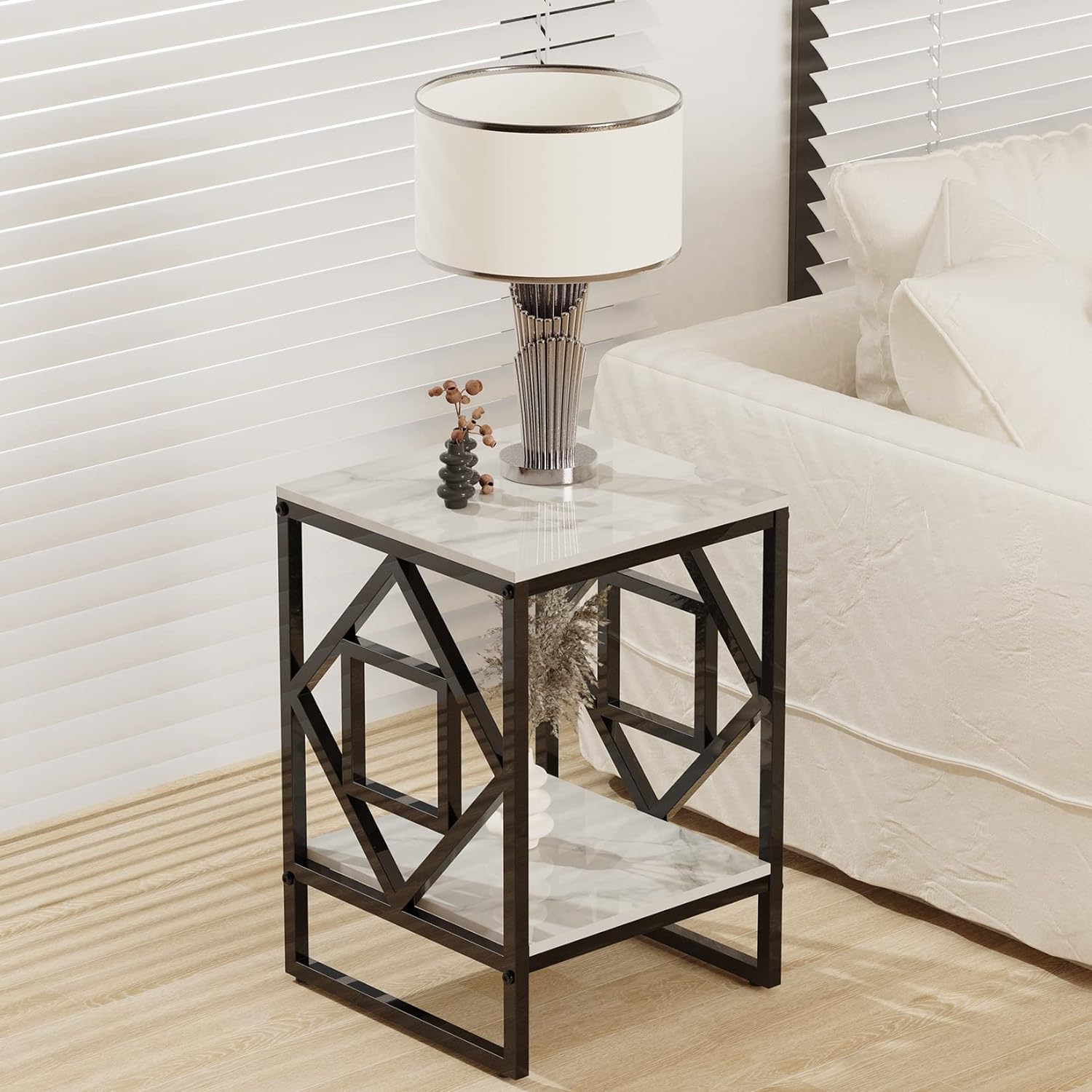 - Einzigartiges Design des Beistelltisch Marmor - Das China charakteristische Quadrate Muster ist seitlich in den Metallrahmen integriert, die Vertrauen, Stabilität, Tradition und Aufrichtigkeit symbolisieren, sind das einzigartige Designkonzept dieses