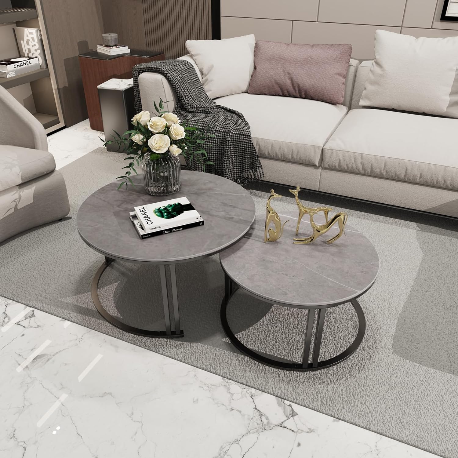 - Klassische Gesinterter Stein Materialien - Dieser Beistelltische set verbinden klassische Gesinterter Stein Materialien mit einer avantgardistischen Formensprache, die Dicke des tischplatte ist 10,7mm, Gesinterter Stein ist kratzfest,