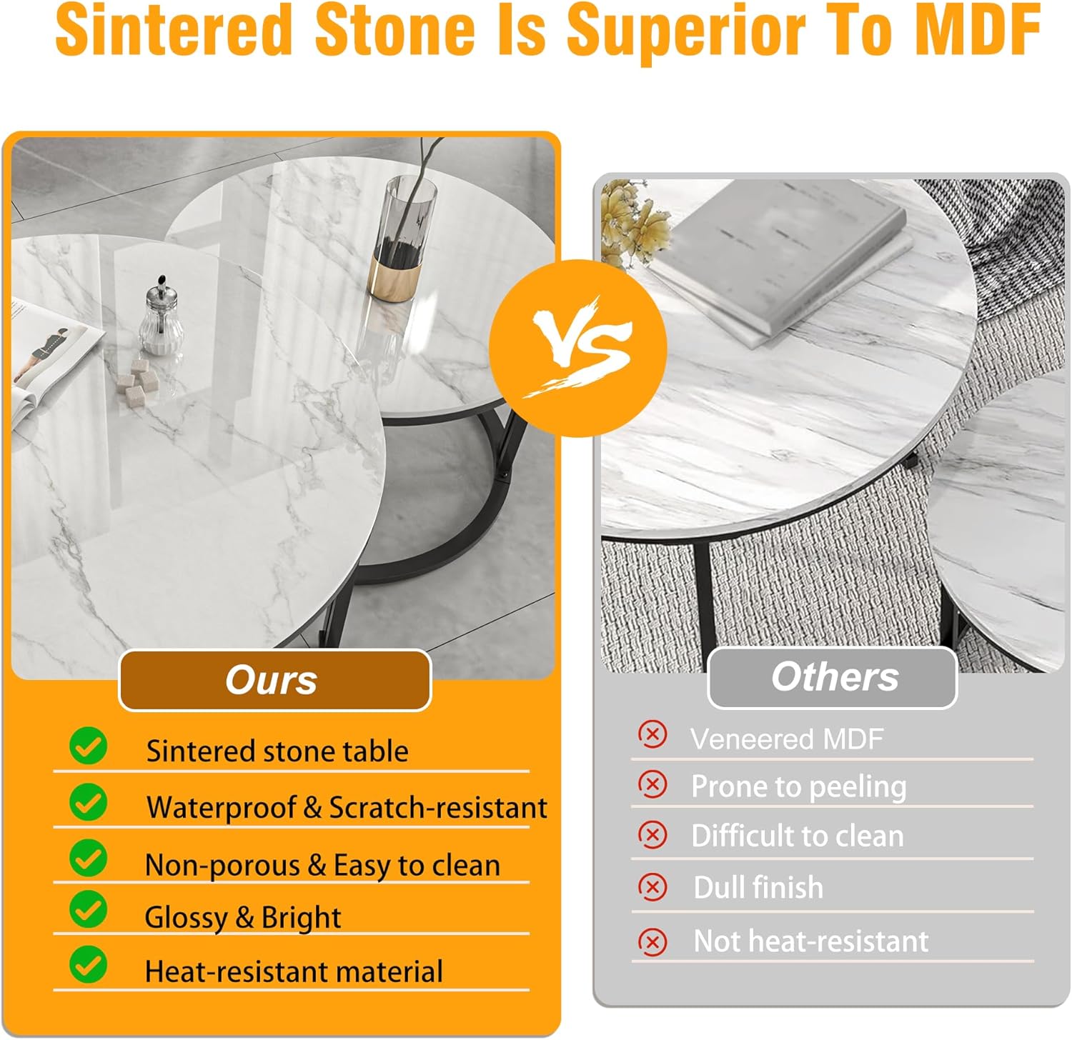 - Klassische Gesinterter Stein Materialien - Dieser Beistelltische set verbinden klassische Gesinterter Stein Materialien mit einer avantgardistischen Formensprache, die Dicke des tischplatte ist 10,7mm, Gesinterter Stein ist kratzfest,