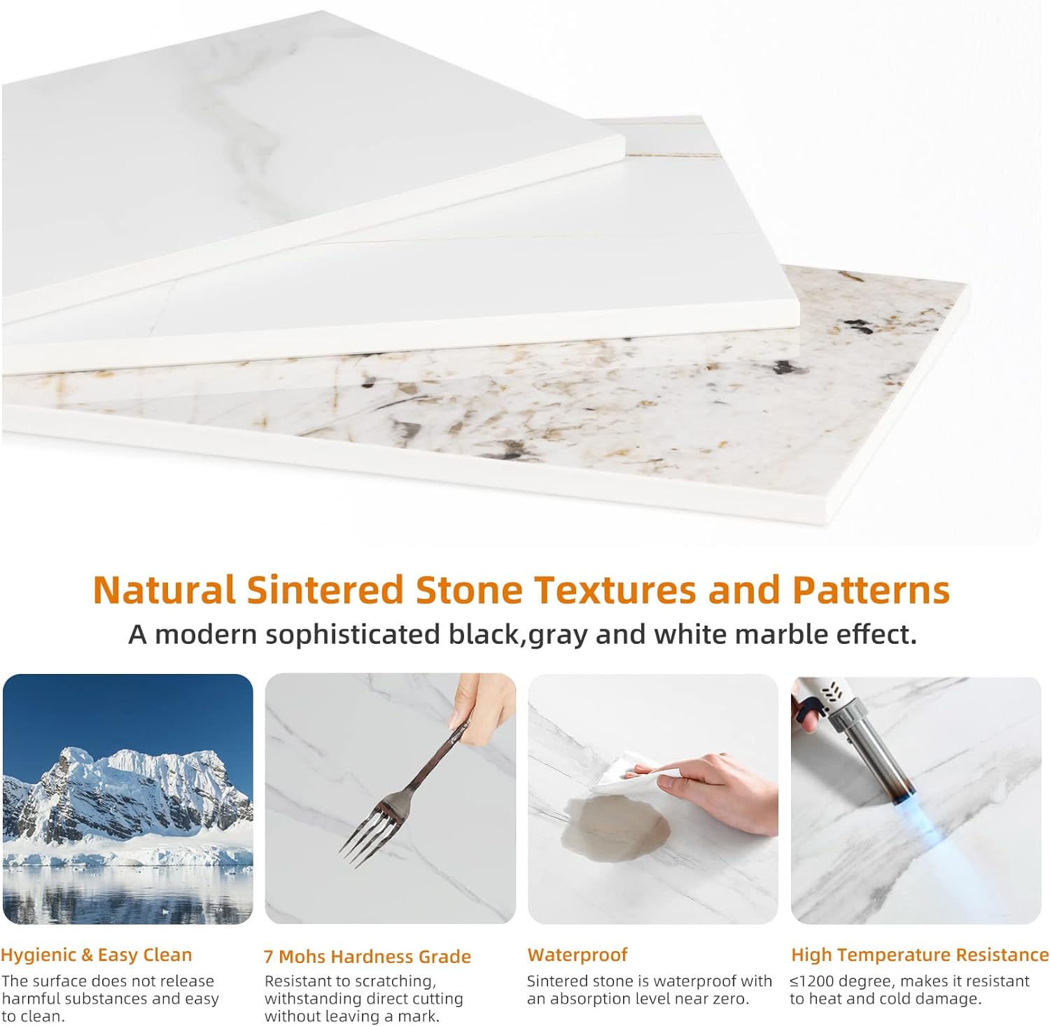 - Echte gesinterte Stein-Tischplatte – unser weisser Marmor-Tisch mit spezieller Technologie, gesinterter Stein verfügt über Mohs-Härte 7 – widersteht Kratzern, hohe Temperaturbeständigkeit – ≤ 1200 Grad, verursacht keine physikalischen