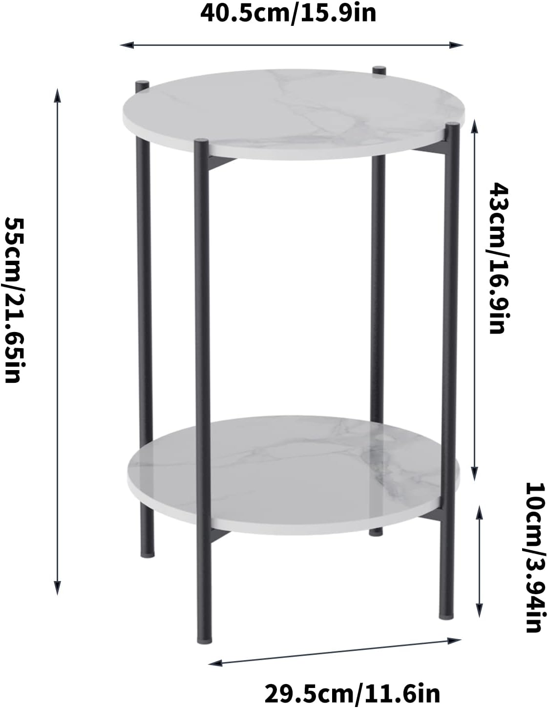 - Runder Tisch mit 2 Ebenen – Insgesamt ist der stilvolle Charme, die solide Metallstruktur sorgt für Stabilität und Stabilität, der runde Beistelltisch kann 20 kg aufnehmen, der Beistelltisch kann neben einem Lesestuhl platziert werden, genug um eine