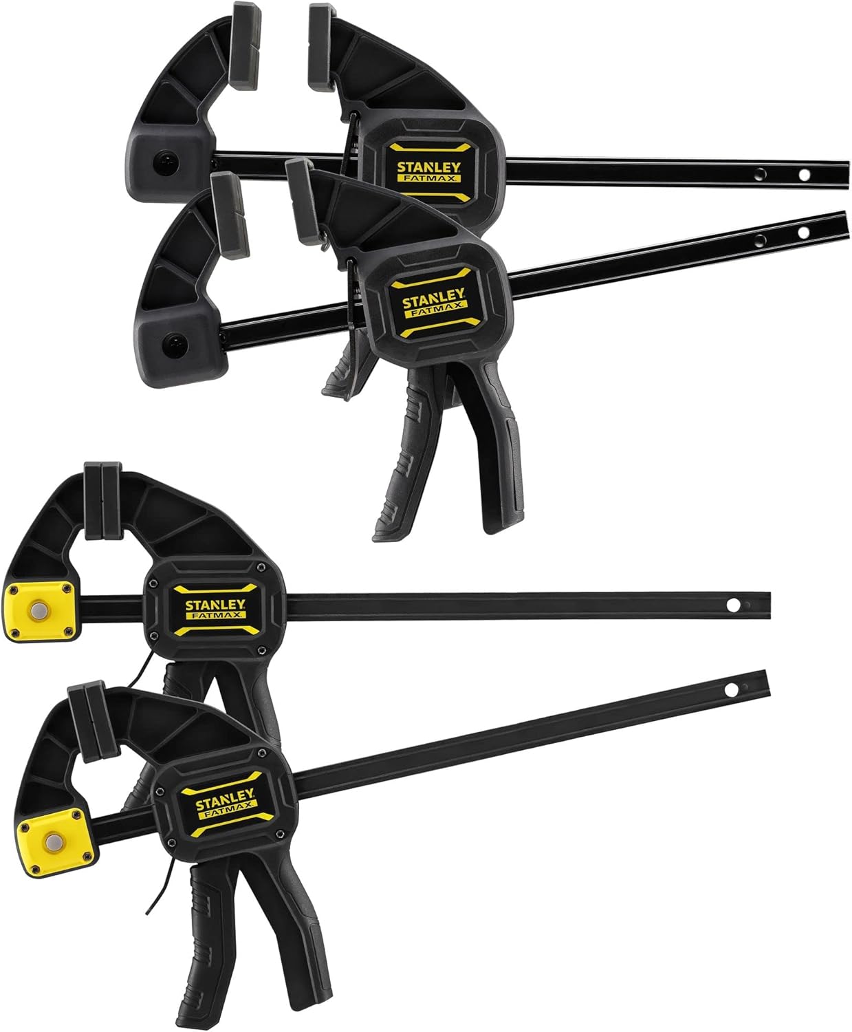 PRODUKTBESCHREIBUNGEN Fatmax Schraubzwingen Set 4 Stück Materialzusammensetzung: 2 Schraubzwingen L-300 mm + 2 Schraubzwingen M-150 mm. Lässt sich leicht in ein Abstandshalter verwandeln, indem Sie den Knopf drücken. Ergonomischer Griff. Produktbeschreibung: 2 Schraubzwingen L-300 mm + 2 Schraubzwinge M-150 mm. Lässt sich leicht in ein Expander verwandeln – Entriegelung der Backen per Knopfdruck Rutschfester ergonomischer Griff. Stahlschiene Eigenschaften: Referenz: FMHT0-83243