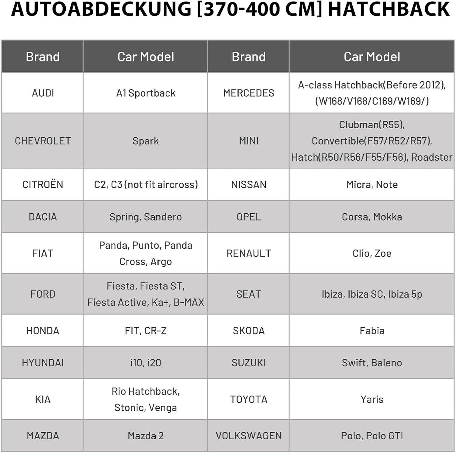 - 【Universal Grösse】- Die Favoto Auto Vollgarage für ganze Saison passt für alle Schrägheck mit Länge (370- 400 cm / Masse: 400cm x 165cm x 155cm ) . Es gibt eine Aufbewahrungstasche in Lieferumfang. Sie können die Autohülle einfach