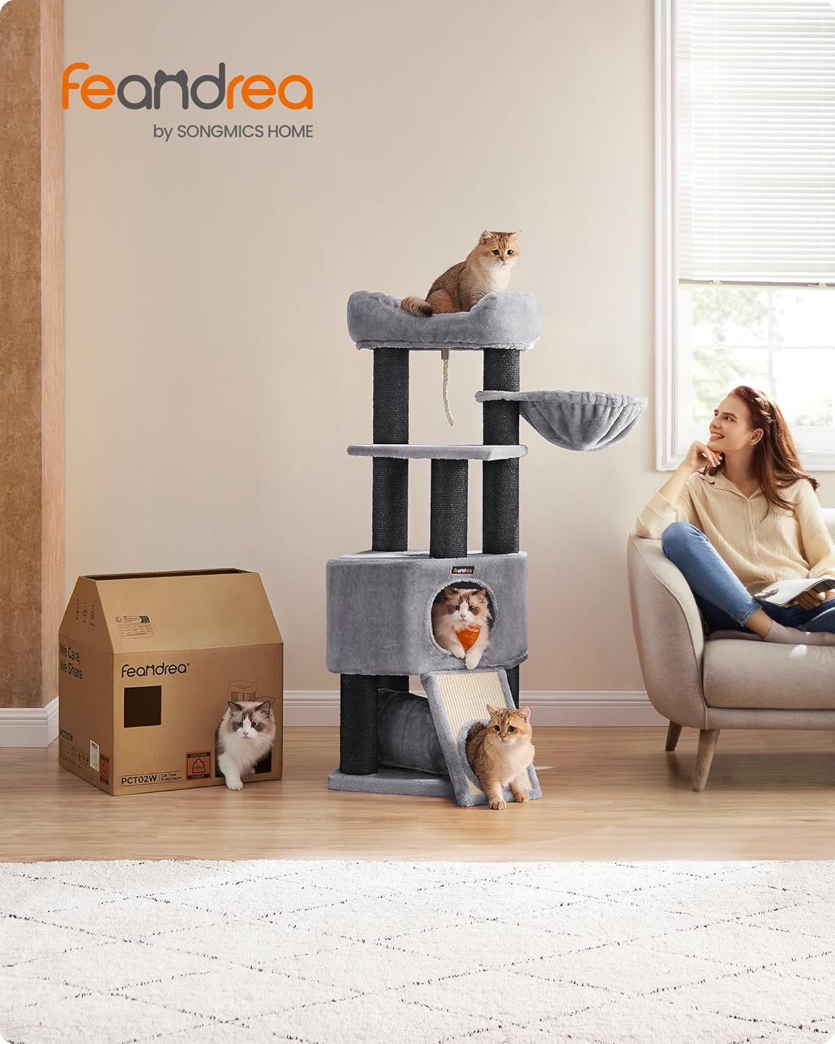 - 【GEEIGNET FÜR BIS ZU 5 KATZEN】Der mehrstöckige Kratzbaum ist insgesamt bis 83 kg belastbar und für mehrere Katzen geeignet. Auf der Plattform zum Beobachten, in der Hängematte zum Entspannen oder auf den Sisalstämmen und dem Kratzbrett zum