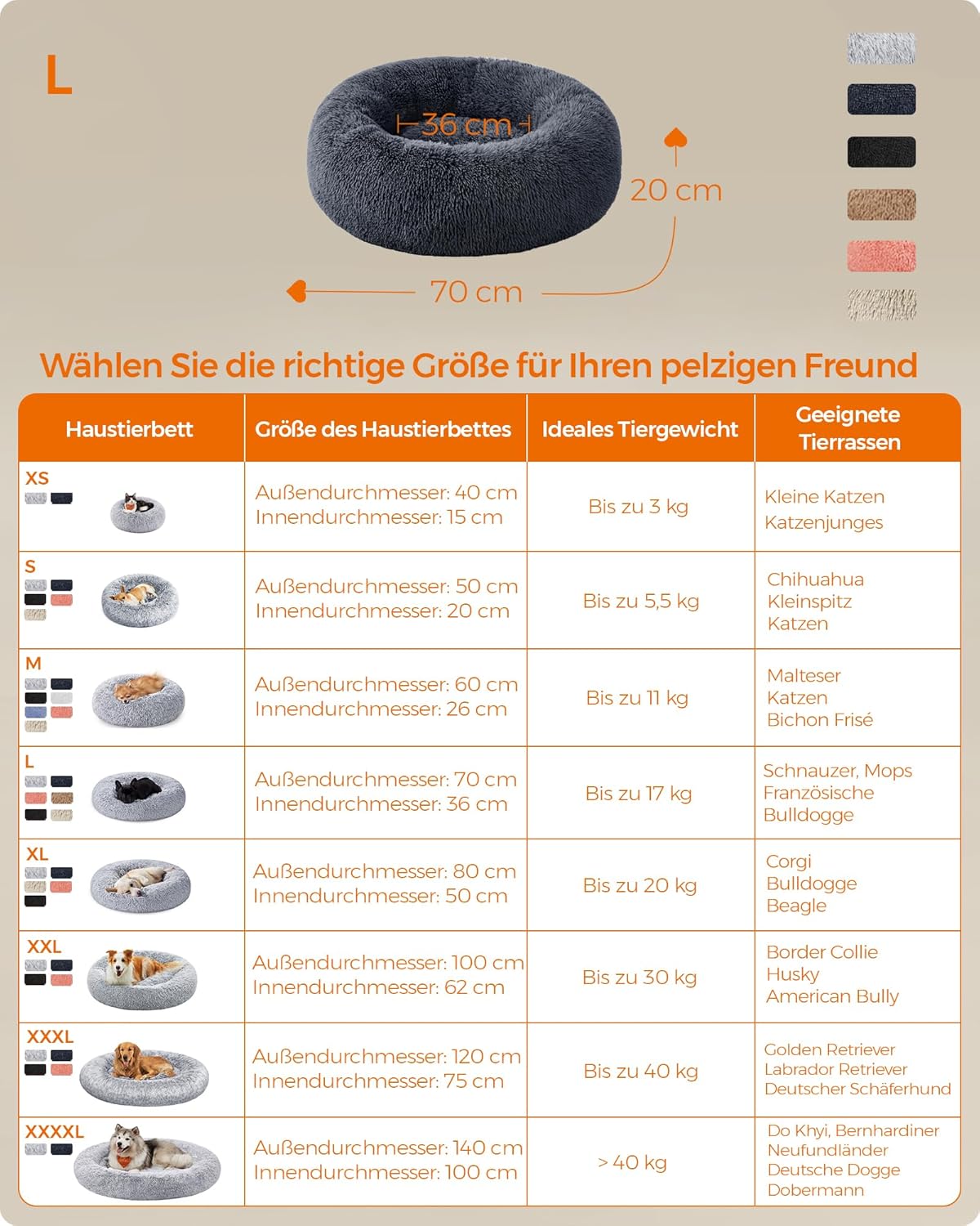 Feandrea Hundebett flauschig, Katzenbett, Donut Kissen, waschbar, Polsterung in der Mitte herausnehm
