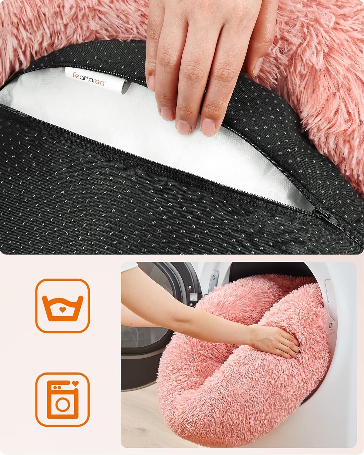 - [Leicht zu reinigen] Mit dem Reissverschluss an der Unterseite dieser Hundematte in Donutform können Sie das Kissen in der Mitte entfernen, um den Rest zu reinigen und Schmutz und Gerüche loszuwerden – weniger Arbeit für Sie und mehr Hygiene für