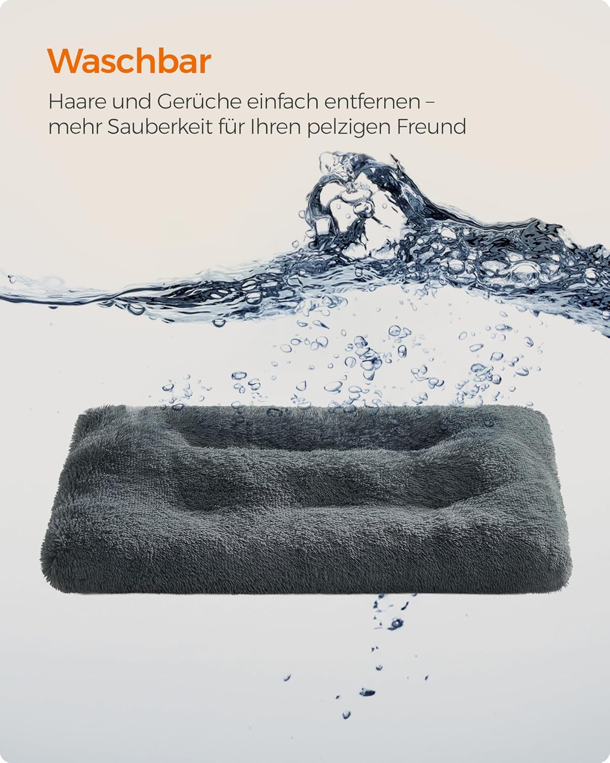 - [Waschbar, leicht zu reinigen] Hunde bringen oft Schmutz und Dreck mit ins Hundebett. Diese Matte ist einfach zu reinigen und kann in der Waschmaschine (warmes Wasser) gewaschen werden, was Ihnen Mühe spart – für Sauberkeit und ein glückliches