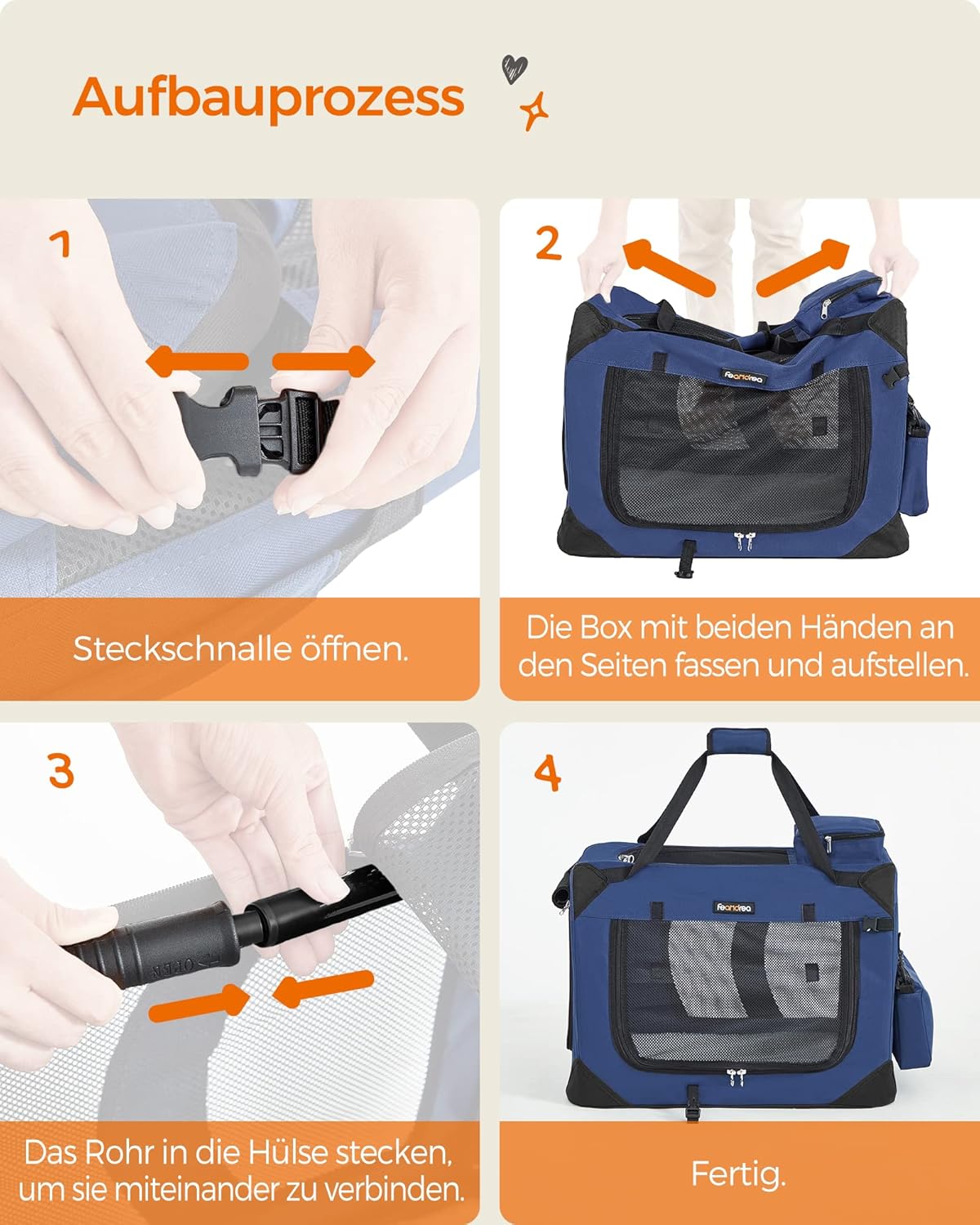 - [Tragbar & faltbar] Die Katzentransportbox lässt sich dank der praktischen Griffe leicht transportieren. Falten Sie sie bei Nichtgebrauch flach zusammen (Grösse zusammengefaltet: 50 x 35 x 8 cm) und verstauen sie im Kofferraum oder in einer Ecke