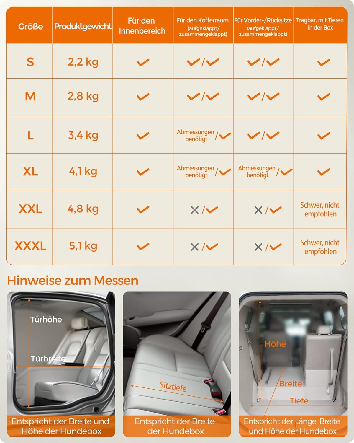 - [Die richtige Grösse feststellen] Die Hundebox (50 x 35 x 35 cm) ist ideal für Tiere mit einem Gewicht von bis zu 7 kg. Empfohlene Rassen: Katzen, Yorkshire Terrier, Kleinspitz, Mops, Chihuahua. Beachten Sie die Hinweise für die richtige Messmethode
