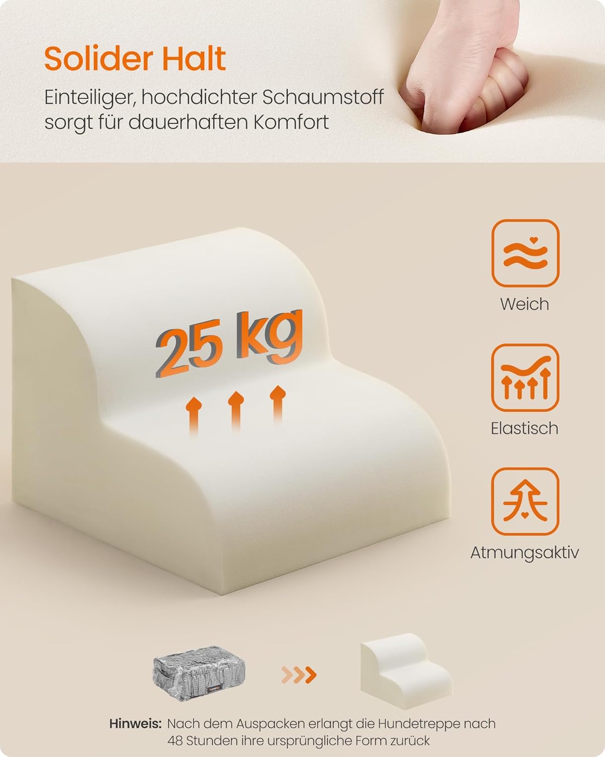 - Pflegehinweise: Die Hundetreppe kommen mit Bezug bei Ihnen an – keine Montage erforderlich! Nach dem Auspacken 48 Stunden ruhen lassen, damit sie ihre ursprüngliche Form wiedererlangt. Der Schaumstoff ist NICHT waschbar
