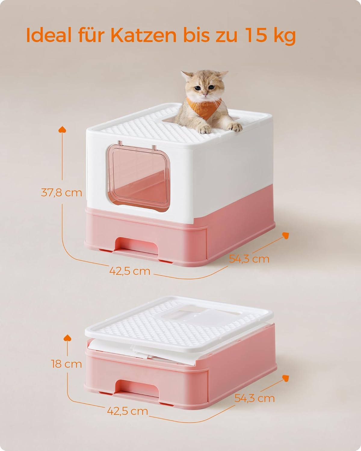 • [Perfekt für grosse und dicke Katzen] Die Innengrösse der Katzentoilette beträgt 50 x 40,5 x 34,5 cm und bietet somit viel Platz für grosse Katzen. Wie sieht es mit der Oberfläche aus? Keine Sorge, sie kann bis zu 15 kg tragen