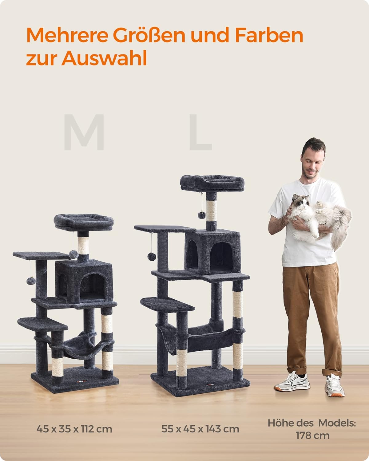 - Einfacher Aufbau: Mit simpler Struktur, Universalschrauben und mitgeliefertem Inbusschlüssel kann dieser Katzenbaum von nur einer Person aufgebaut werden