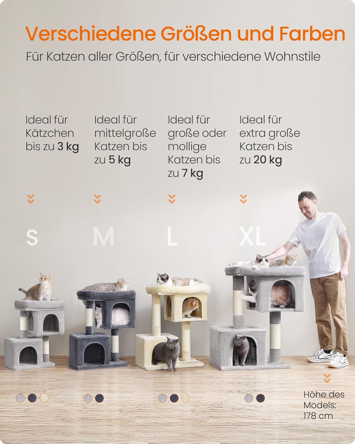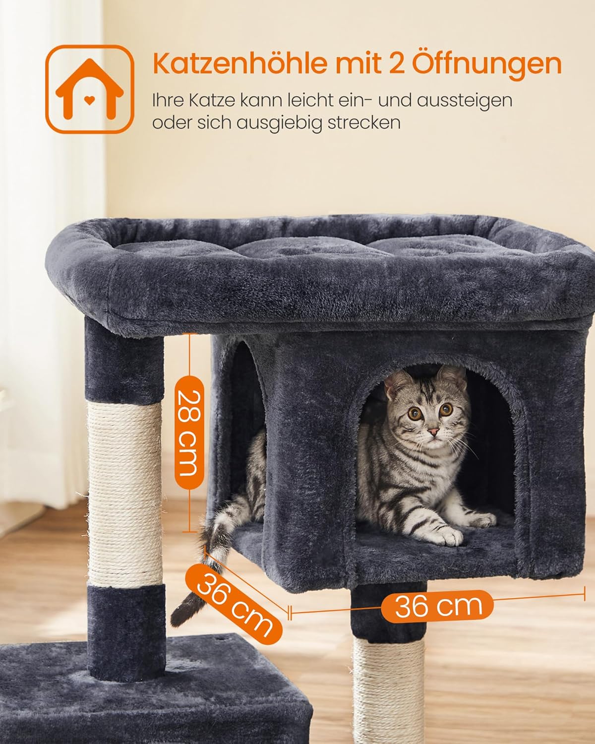 - Klettern, kratzen, entspannen: Das mehrstufige Design erleichtert das Auf- und Absteigen. 2 Sisalstämme ist perfekt zum Kratzern. Die Plattform oben ist ideal zum Beobachten. 2 Höhlen sind bequem zum Entspannen