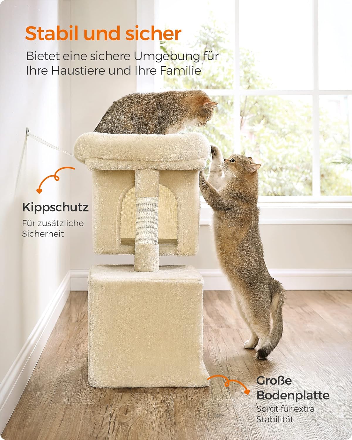 • [Robust, stabil, sicher] Robuste Holzspanplatten für Langlebigkeit, grosse Basis für Stabilität und ein Kippschutz für Sicherheit – dieses Katzenhaus bietet einen sicheren Spielplatz für Ihren pelzigen Freund